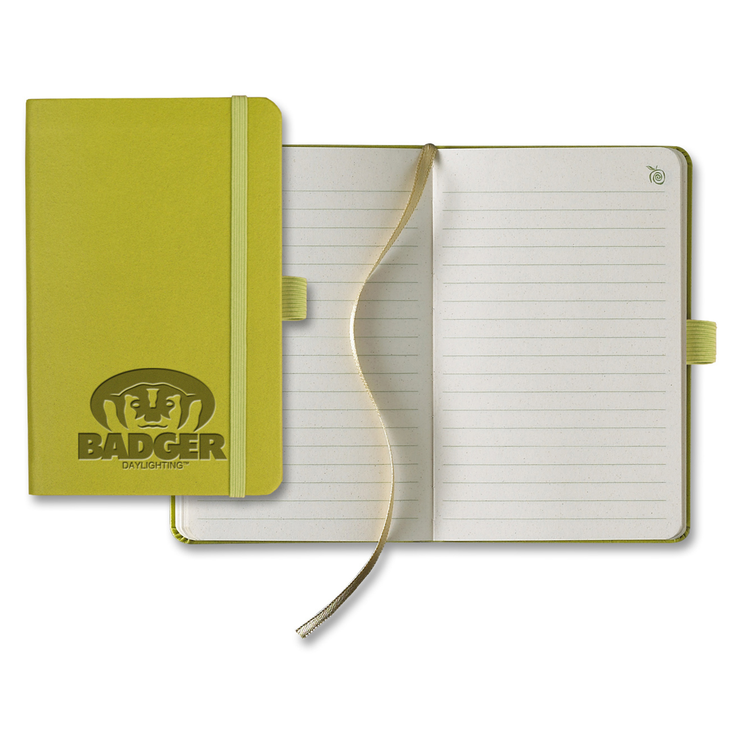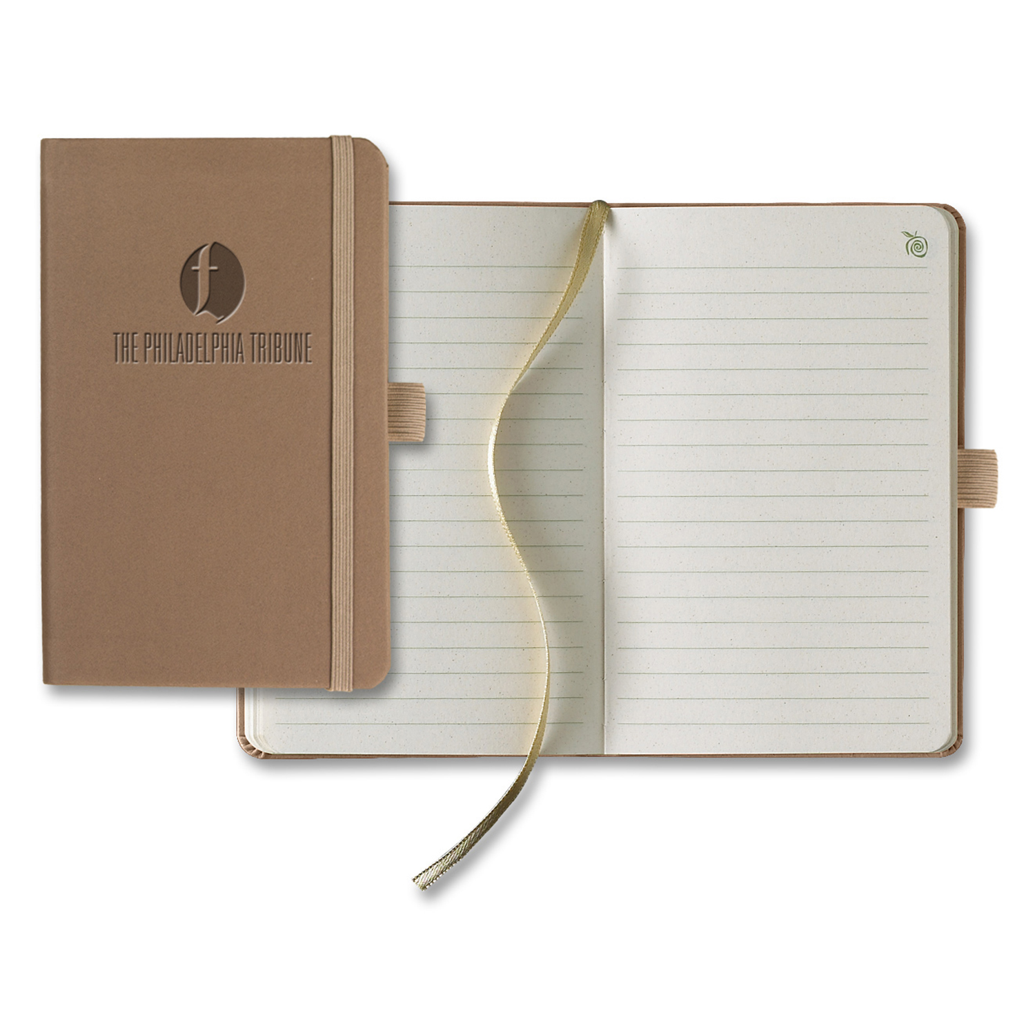 Start expanding your business when you give out this ApPeel® Pico Journal. The eco-peel cover and paper is made from apple pulp and other vegetable fibers that are ground and emulsified into an organic material! That makes this eco-friendly, animal-friendly, sustainable and all natural. It measures 3 11/16" x 5 5/8" and contains 160 pages with green lines, gray end pages with colored stripes, gold ribbon marker and a back pocket. Accented with an Apple Scent that comes standard. Add your logo and show your dedication to a greener Earth! FSC MIX 70% CQ-COC-000479