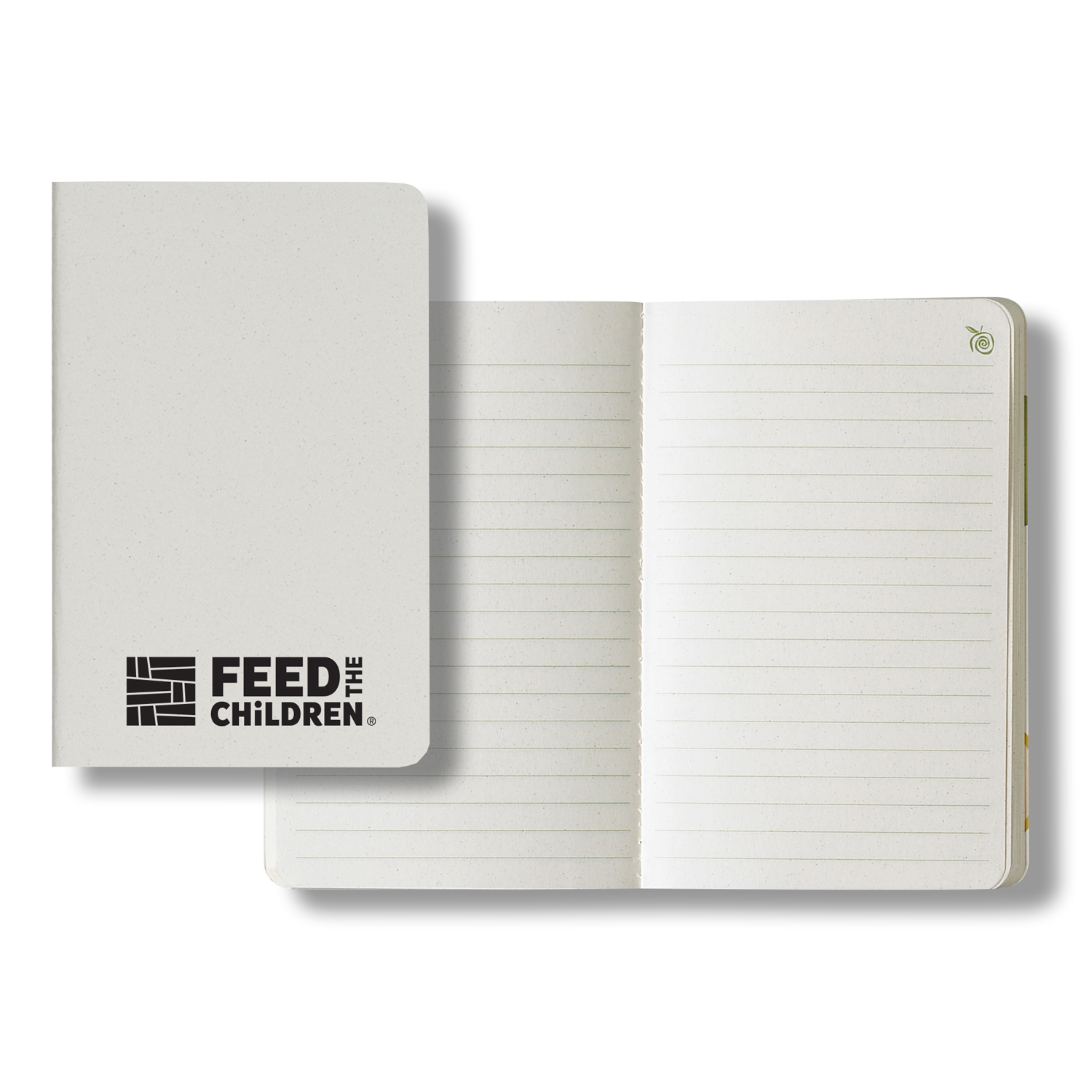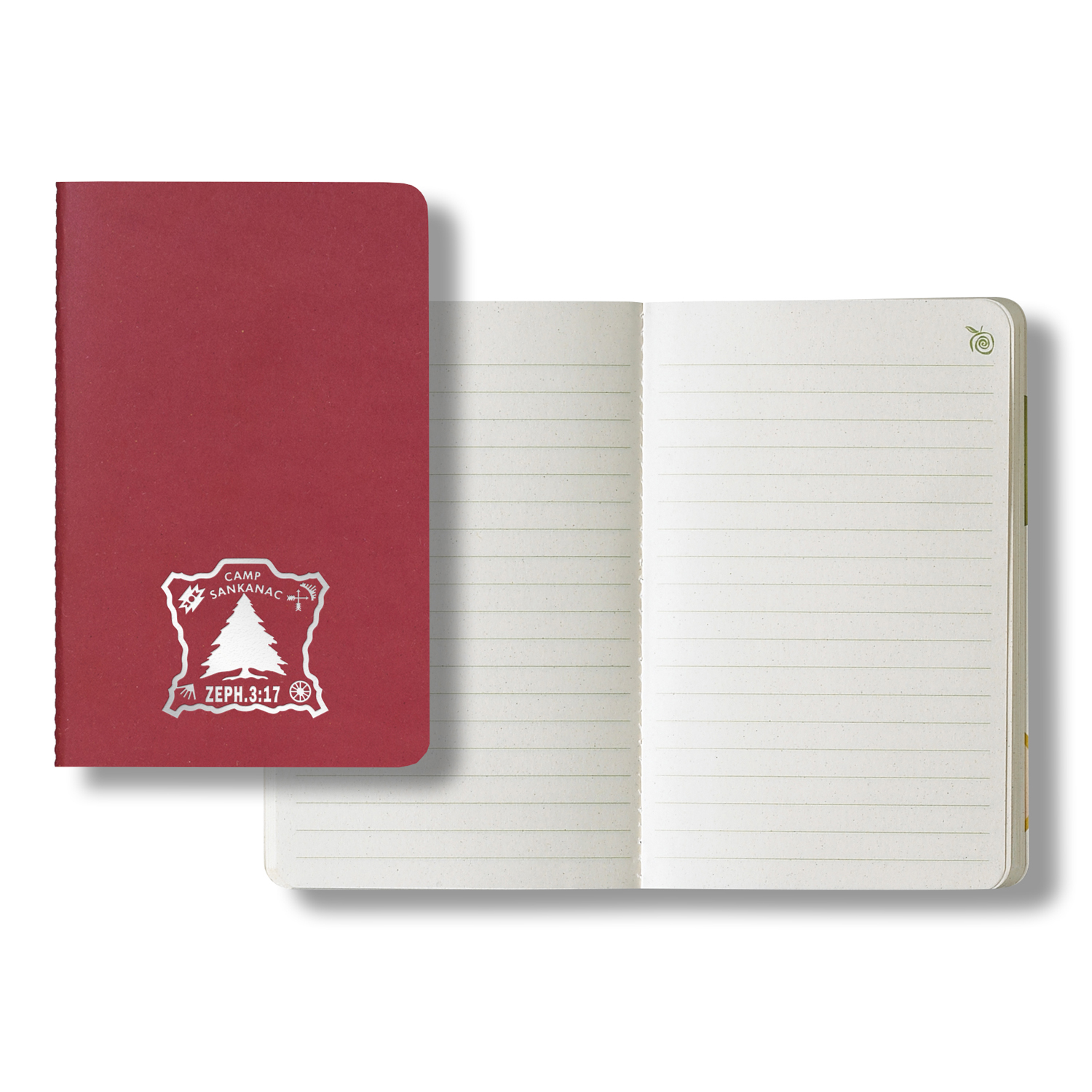 ApPeel® Pico Saddlestitched Journal. The cover and paper is made from apple pulp and other vegetable fibers that are ground and emulsified into an organic material. This item is remarkable because it's eco and animal friendly, sustainable, and all natural. It measures 3 11/16" x 5 5/8" and contains 48 pages with green lines and a back pocket flap. Lastly, it's saddle stitched with matching thread color. Accented with an Apple Scent that comes standard. Add your logo via 4 color process and appeal to those who care about the world's resources. FSC MIX 70% CQ-COC-000479