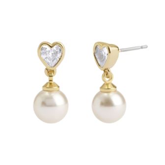 Glistening stone heart studs paired with dangling pearl drop and hypoallergenic titanium posts perfect for everyday. Earrings have a post back closure. Includes signature COACH jewelry dustbag.