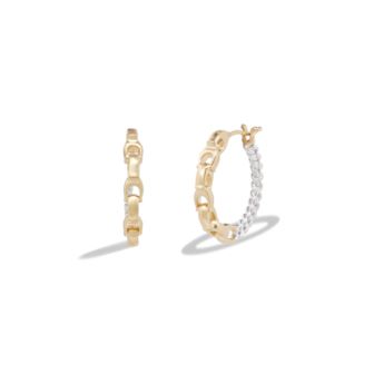 Everyday mixed frozen chain link small-sized hoop earrings featuring curb chain with contrasting signature sculpted C links. Earrings have a click-top closure and hypoallergenic titanium post. Includes signature COACH jewelry pouch.