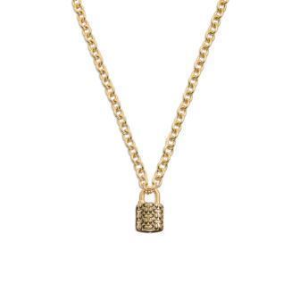 Bold necklace chain featuring padlock pendant with signature sculpted C quilted motif. Accented with crystals for a bit of sparkle. Necklace has an adjustable lobster clasp closure. Includes COACH pouch.