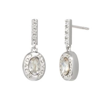 Drop earrings from COACH featuring delicate pavé bar with glistening stone drop adorned with signature logo. Earrings have a post back closure. Includes COACH storage pouch.