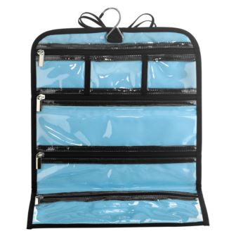 This six-pocket jewelry roll folds flat or rolls up to pack into a suitcase or carry-on. The clear, zippered pockets fit large and small items, from thick necklaces to tiny studs, protecting them from scratches and loss. The hanger hook lets you suspend your collection from doors and mirrors for easy visibility and access.
