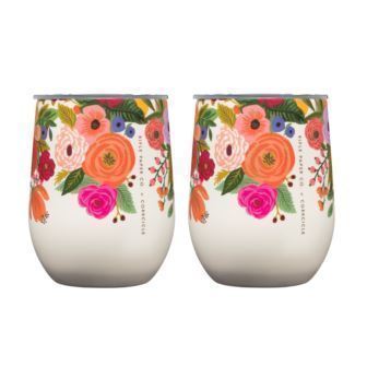The Rifle Paper Co. Lively Floral Stemless Wine Cup is great for everything from water to wine. Corkcicle pairs floral patterns with the high-performing hydration insulation you know and love. It makes the perfect Mother's Day gift. Package includes 2 stemless wine cups. HANDWASH ONLY
