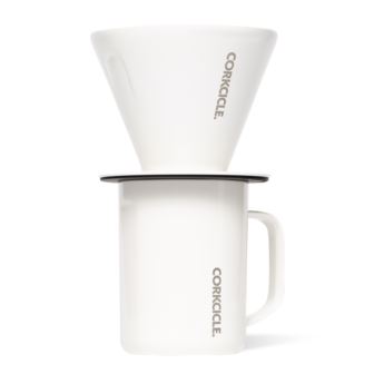 Add a touch of style to your brewing ritual with the Pour Over Set, the perfect gift for at-home baristas and coffee connoisseurs alike. The set includes 1 Pour Over, plus a matching insulated Coffee Mug. The double-walled stainless steel Pour Over works with #2 and #4 filters, and has a no-slip, no-click silicone bottom. It's also available individually, and fits on most mugs.