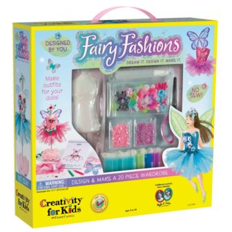 Let fairy dreams take shape with the Designed by You Fairy Fashions kit! Ideal for kids 8+, this complete craft set invites little designers to create at least five full fairy outfits-skirts, tops, wings, flower crowns, and more-for an 11" doll. With 20 pages of sketchbook inspiration, fabric, tulle, ribbon, embellishments, plastic needles, and décor-they'll design, tie, stitch, and sparkle their way to a magical wardrobe. Safe, non-toxic, and made for confident creativity.