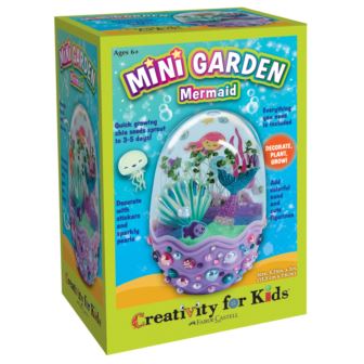Decorate, plant and grow your own mini garden in an egg-shaped mini environment. Complete with everything you need to grow your own mini garden, each kit includes potting mix, quick growing chia seeds, themed stickers, dimensional accents, fun mini figures and decorative sand. Mini Gardens available in 3 themes – Unicorn, Mermaid or Dinosaur – collect all three! Chia seeds start sprouting in 3-5 days. Finished gardens measure 5 ¼" h x 3" w.