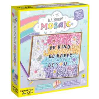 Practice the power of positivity! This complete set includes everything you need to make your own mosaic masterpiece. Just peel the cover off the inside of the frame to reveal adhesive, then use the stylus to pick up and place the mosaic tiles. Seal with glitter glue to add a touch of sparkle, then finish your design with the fun puffy stickers. This mosaic-making craft is both calming and creative. Display it in your room or give it to someone special.