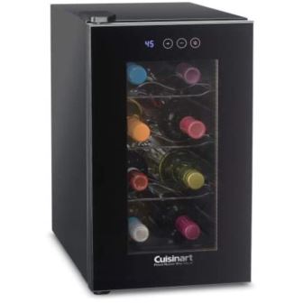 The Cuisinart Private Reserve Wine Cellar is the compact solution for your wine storage, maintaining the ideal storage temperature to preserve the signature bouquet, body, and flavor of 8 bottles of your favorite wines. Use the touchpad to set the preferred temperature (between 39-68F) and let the thermoelectric cooling system hold the temp, quietly and efficiently. The stainless finish and soft interior lighting display your wines in style.