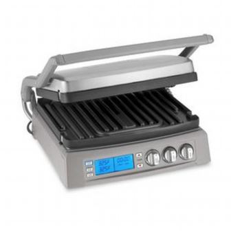 The Griddler Elite boasts six impressive cooking functions in sleek brushed stainless steel that gleams on any kitchen countertop. This stylish electric grill can tackle any task, with the ability to grill, griddle, half grill, half griddle, panini press, and top melt sandwiches, meats, and appetizers. The electronic display lets you set a timer and dual zone temperature control, meaning you can griddle an egg on one plate while grilling bacon on the other across a generous 240 square inches of cooking surface. With reversible plates, our superior SearBlast feature locking flavor into steaks at 500deg.F, and a top cover that is fully adjustable, cooking is perfectly customized and precise every time. The dishwasher safe nonstick grill plates are also conveniently removable for easy clean up after even the gooiest, cheesiest sandwich or sticky barbecue sauce.