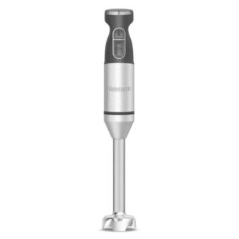Versatile and durable, this kitchen essential provides the high performance today's home chefs demand. Equipped with a 300-watt DC motor that delivers maximum power with minimum noise, the Smart Stick Variable Speed Hand Blender switches from low to high speed at the turn of a dial. The long stainless steel shaft reaches deep to blend in bowls, pots and pitchers, while the mixing/measuring cup, chopper/grinder and chef's whisk make short work of a wide variety of food prep tasks. From pureeing soup to emulsifying mayonnaise to whipping meringues, this hand blender consistently delivers chef-caliber results.
