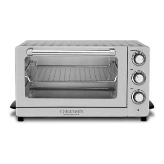 Cuisinart brings a classic approach to modern cooking with the Toaster Oven Broiler with Convection. The industrial stainless-steel styling, and the 0.6 cu ft. capacity - large enough to fit a 12'' pizza or 6 slices of toast - make this countertop oven a valuable addition to any kitchen. This multi-functional oven can bake, broil, toast, warm, convection bake and convection broil to perfection with a glass window allowing you to monitor the cooking progress without opening the door. Cleanup is easy thanks to the interior nonstick coating and the removable crumb tray.