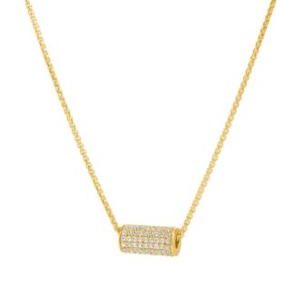 A barrel of expertly-cut, light-catching Cubic Zirconia sparkles on the Petit Pavé Mini Tube Necklace, suspended from a fully adjustable soft box chain. Dean Davidson's signature brushed gold pieces are cast out of the highest quality brass and then plated in gold.