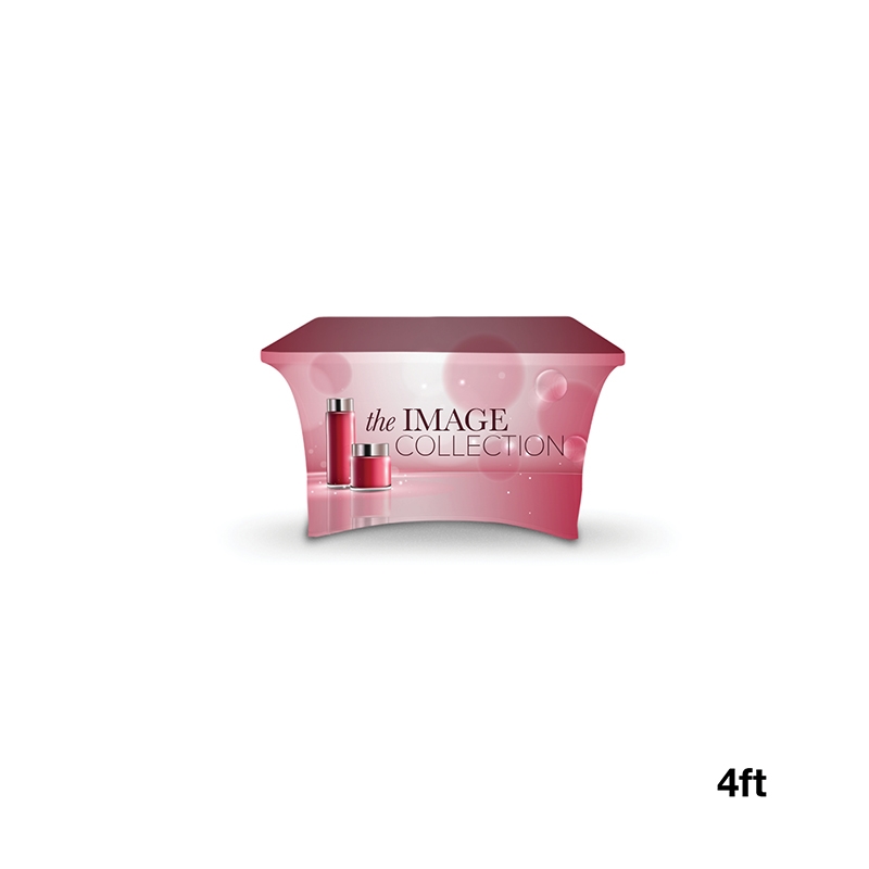 The 4' Stretch, Open Back Table Cover is ideal for trade shows, product launches, exhibitions and presentations. It’s easy to manage as it is made of polyester, is machine washable, ironable and fire-retardant treated. This cover is created for a 4’ table with dimensions 48” x 30” x 29”. It is highly elastic and has rubber feet for the table legs, creating a clean tight fit. This 3-sided table cover leaves the back open for you to rest your legs and easily access items underneath your table. Carry this table cover in its PVC zippered carrying bag. Utilize its full color dye sublimation printing to create vivid images and promote your brand! EQP does not apply on DisplaySplash orders.