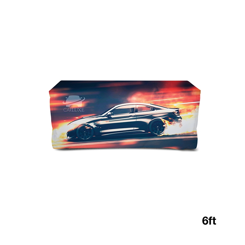 The Fitted 6’ Open Back DisplaySplash Table Cover is ideal for trade shows, product launches, exhibitions and presentations. Draw customers and promote your brand with a vibrant full color dye sublimation. This table cover fits a 6’ table with dimensions 72” x 30” x 29”; it covers 3 sides of a table and leaves the back open for you to rest your legs and easily access items underneath. It is easy to take care of as it’s made of 300D polyester, is wrinkle-resistant and fire-retardant treated, machine washable and ironable. The sewn corners give a tight fit that stays in place and provides a clean look. Carry this table cloth to your next show in its PVC zippered carrying bag. EQP does not apply on DisplaySplash orders.