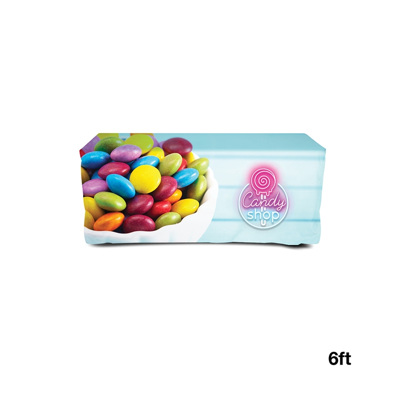 The 6' Fitted DisplaySplash Table Cover is easy to manage as it is made of 300D polyester, is machine washable, ironable and wrinkle-resistant and fire-retardant treated. You can carry this table cloth in its PVC zippered carrying bag. Use dye sublimation to create vivid images and promote your brand. It covers all 4 sides of your table and is created for a 6’ table with dimensions 72” x 30” x 29”. Its sewn corners give a clean look and keep the cover in place. Grab this cover for your next trade show, product launch, exhibition or presentation! EQP does not apply on DisplaySplash orders.