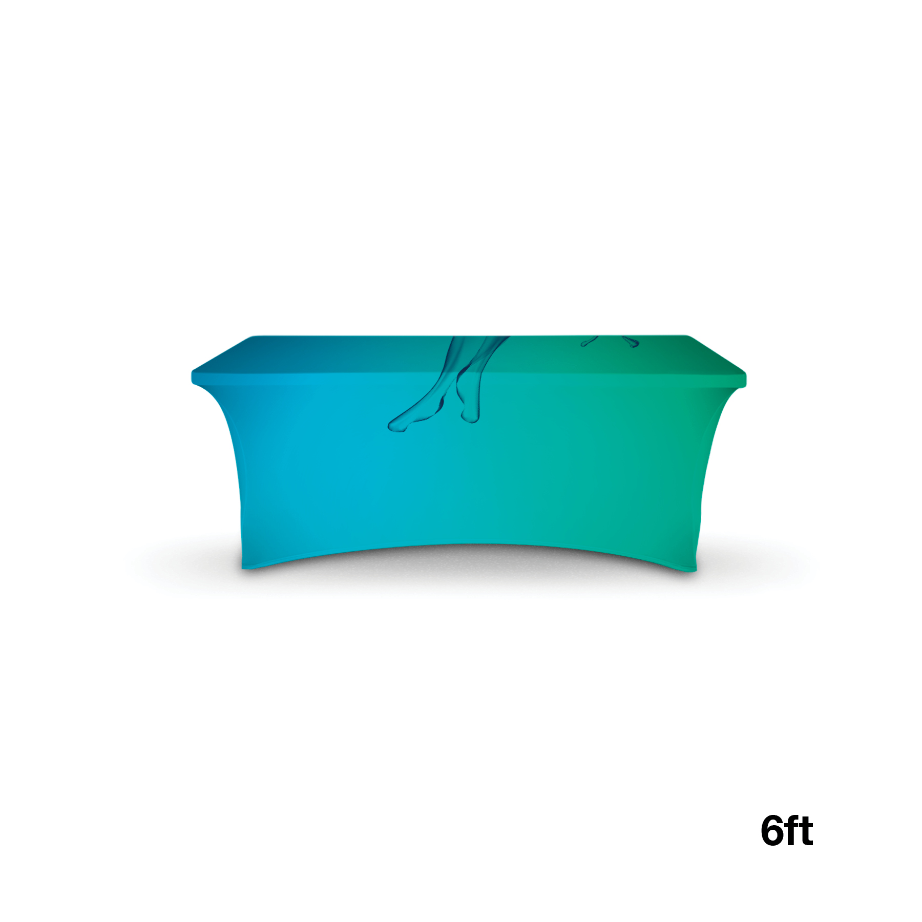 The 6' Stretch DisplaySplash Table Cover is easy to manage as it is made of 180g elastic polyester, is fire-retardant treated, machine washable and ironable. Created for a 6’ table with dimensions 72” x 30” x 29”, it is highly elastic and has rubber feet for the table legs which form a clean tight fit around all 4 sides of your table. This table cover also comes with a PVC zippered carrying bag. Promote your brand with a vibrant full color dye sublimation. Grab this cover for your next trade show, product launch, exhibition or presentation! EQP does not apply on DisplaySplash orders.