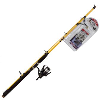 Catfish don't quit - and neither should your gear. The Catfish Spinning Combo Kit is engineered to handle strong runs and deep pulls while maintaining the flexibility needed for solid hooksets and smooth retrieves. Made of durable fiberglass construction, this 8' 2 piece rod breaks down into two sections, making it easy to store. Delivering Moderate Action with Medium Power, it's the perfect backbone needed to reel in solid fighters. Comes with a tackle kit complete with bait! The reel comes pre-spooled with monofiliament line.