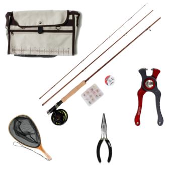 Take your fly fishing to the next level with a ready-to-go kit designed for the angler who wants everything in one package. From casting to catching, landing, and handling your trout, this bundle has you covered. Package includes: Fly Rod and Reel Combo Kit a durable composite blank 8'6" 3-piece fly rod and reel pre-spooled with fly line and backing. Includes a tapered leader, 12 flies, a bamboo trout net for protecting delicate trout skin, mini braided nippers for finishing knots, long nose pliers to make hook removal a breeze, and a durable polar creel
