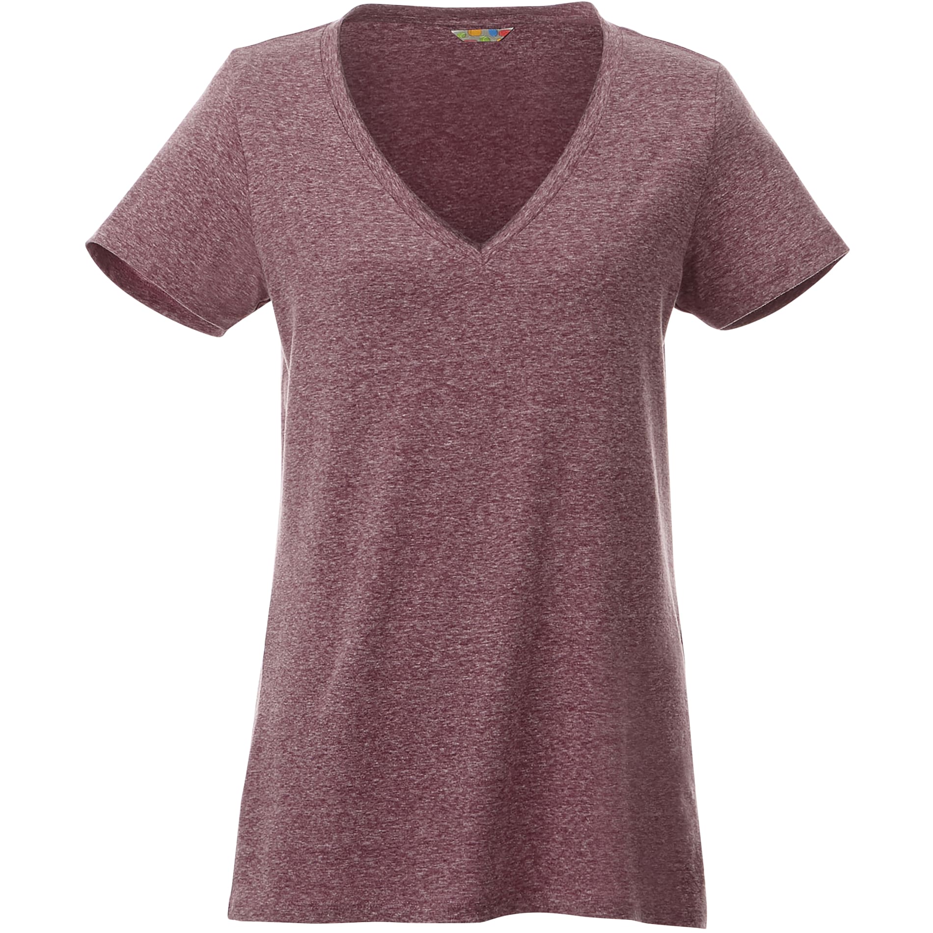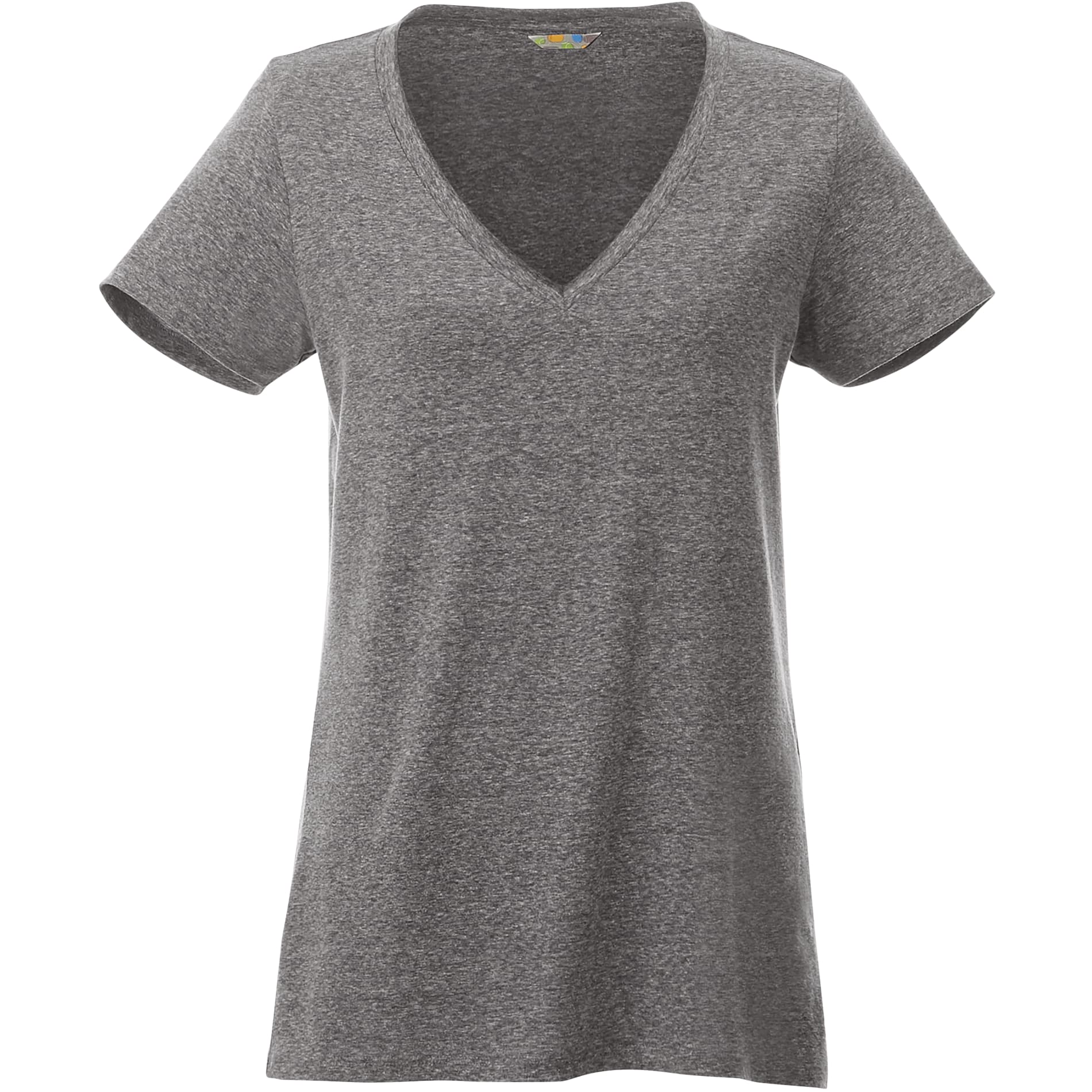 The Women's Canyon Short Sleeve Tee is a V-neck style tee featuring a cozy, tri-blend fabric. This lightweight style also provides UV protection (UPF 40+). The women's version has shaped seams and tapered waist for a flattering fit.