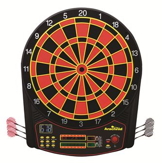 Aim higher with the Arachnid Cricket Pro 450. The Cricket Pro 450 offers the flexibility to play against yourself or against family and friends in 31 different games or 178 optional variations to choose from. The dartboard delivers 5 multi-color backlit LCD displays for a clear view of scoring and statistics. Two dedicated X/O scoring windows allow you to keep track of cricket games with ease. Fuel your competitive spirit with the optional, interactive Heckler feature that applauds good throws and harasses players for bad throws.
