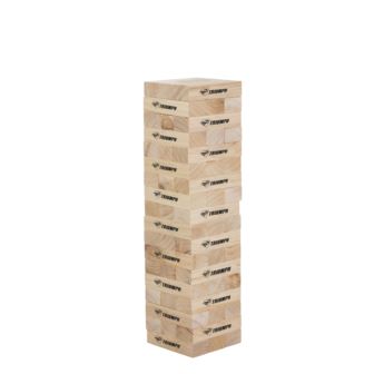 Stack the blocks as high as you can before watching the tower come tumbling down. The Triumph Fun Size Tumble is a must-have addition for game nights with family and friends. This set includes 54 wooden blocks, each measuring 6-in L x 2-in W x 1.25-in H. When built to height, the tower reaches 18 levels high and 22.5-inch tall. These strong stacking blocks are constructed out of New Zealand pine wood and built to endure repetitious tumbling. When finished playing, conveniently store and transport your set using the durable canvas carry bag.