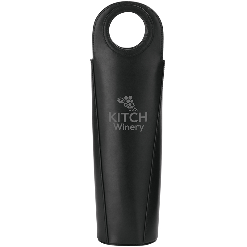 Single bottle wine carrier has a leather exterior with foil insulation and padded interior.