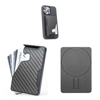 The Fantom M is the MagSafe equipped minimalist wallet with a patented fanning mechanism. The included MagSafe Sticker allows the user to magnetically attach the wallet onto the back of any phone that is not MagSafe compatible. Wallet is extra slim and holds 4-7 cards and is full RFID blocking. Features 100% aluminum construction and a lifetime warranty. It is manufactured in Canada and is compatible with the Fantom titanium money clip.