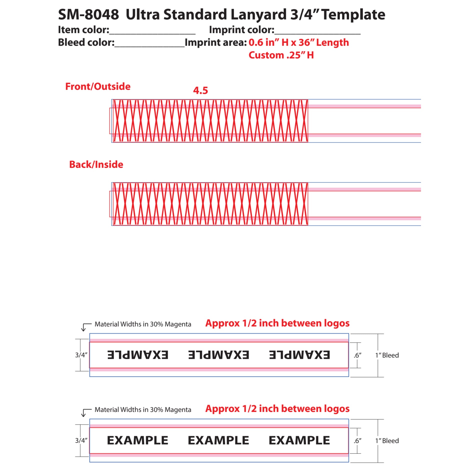 The Full Color 3/4" Premium Lanyard w/Hook is a full sublimation-dyed premium lanyard with smooth finish that's Made in the USA in a 3/4-inch width, 36-inch length. Lanyard comes with a metal crimp and metal swivel snap hook (SM-8104) as default attachment. Alternate attachment options available. Must specify optional attachment item number at time of order. Packed in standard bundles of 50. FOB ZIP: RI, 02920