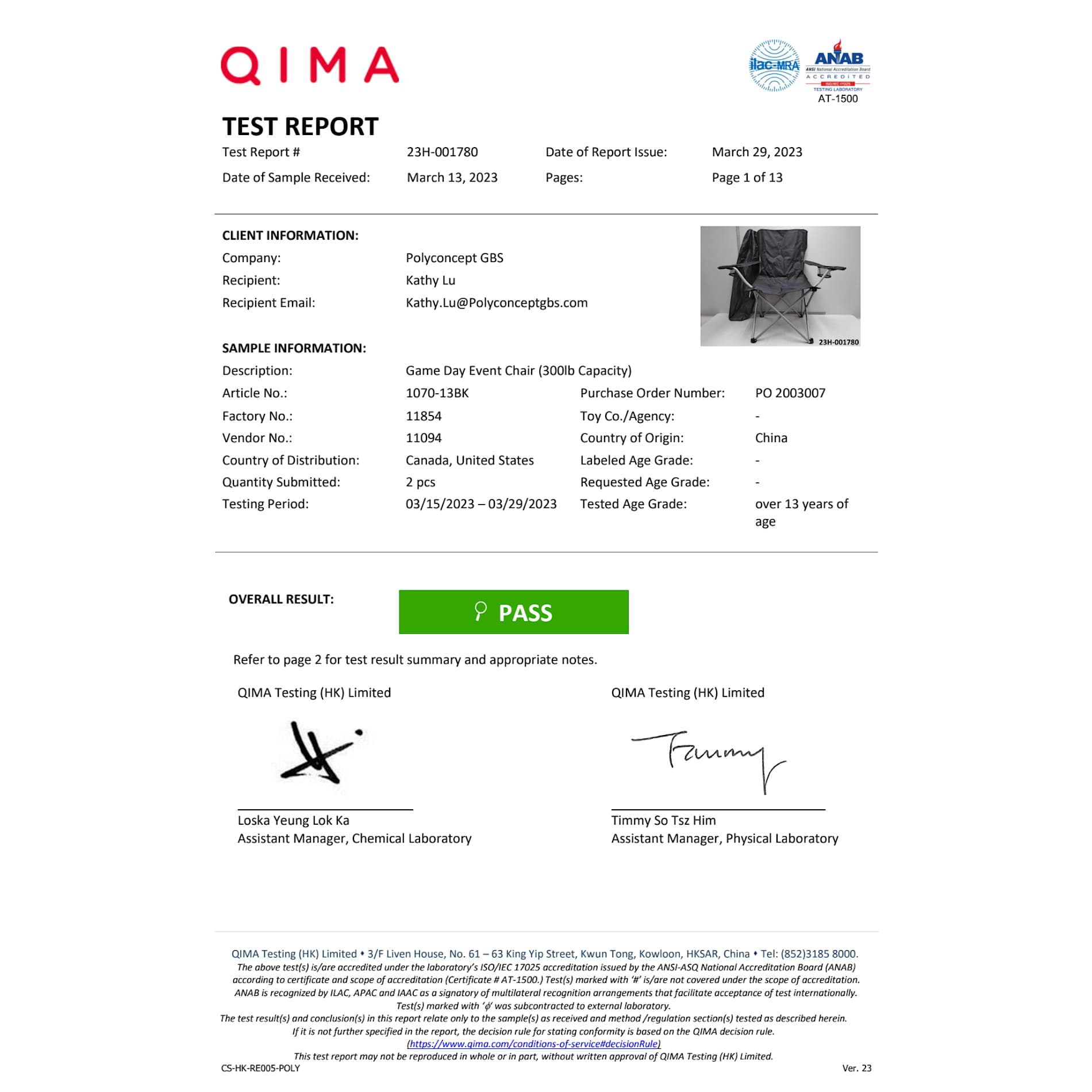 PolyCanvas outdoor chair folds up and fits into carrying case with strap for easy transporting and storage. Features armrests with built-in cup holders. Some assembly required, chair must be inserted into bag. Loading weight limit: 300lbs.