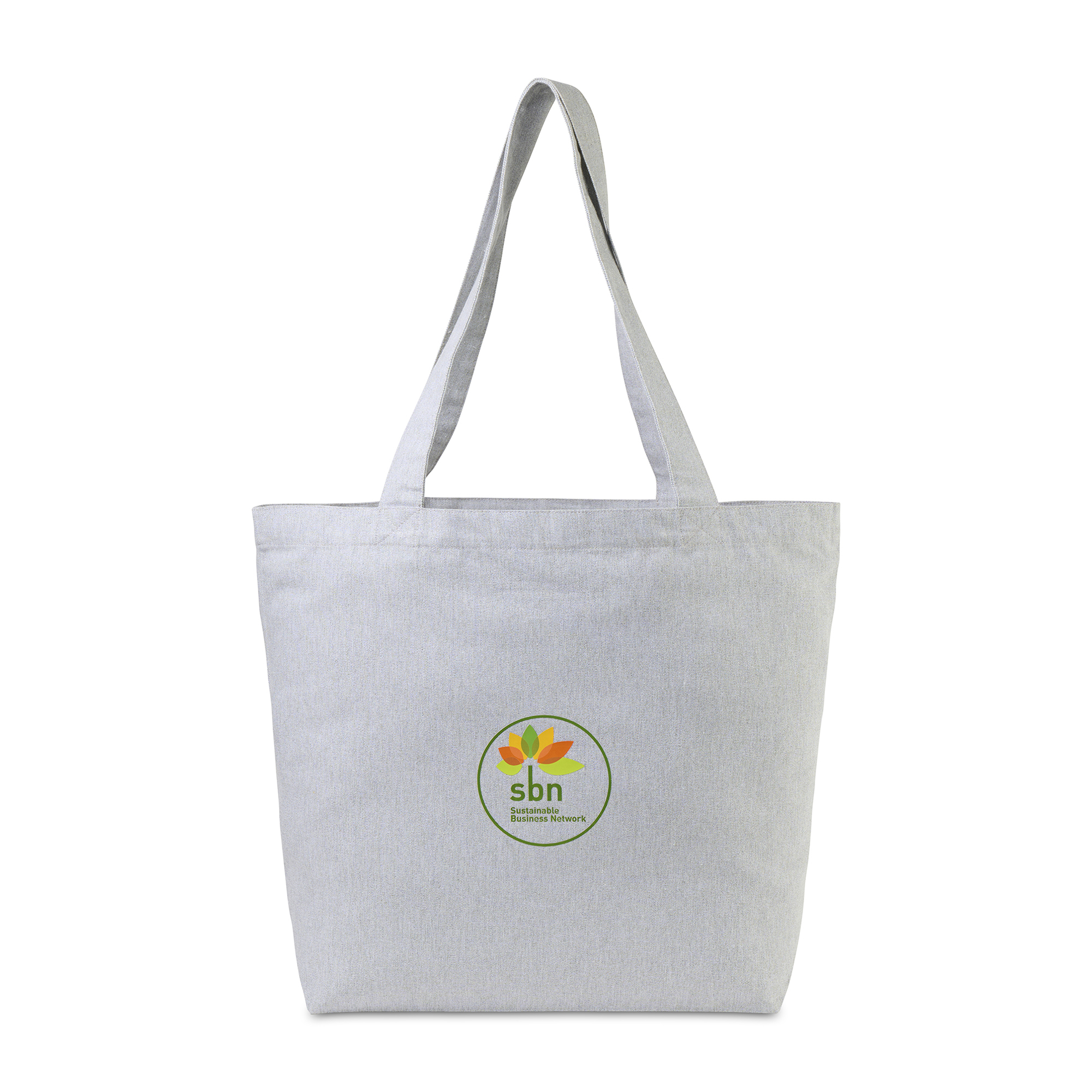 Stylish, functional, verified. The AWARE™ Recycled Cotton Shopper Tote offers roomy storage with a gusseted design and an interior 7" x 5" zip pocket for securing essentials. Long 29.5" straps make it easy to carry, while the integrated AWARE™ Virtual ID & Product Passport verifies its recycled origin and impact. Subtle color variations reflect its recycled content. PVC free.