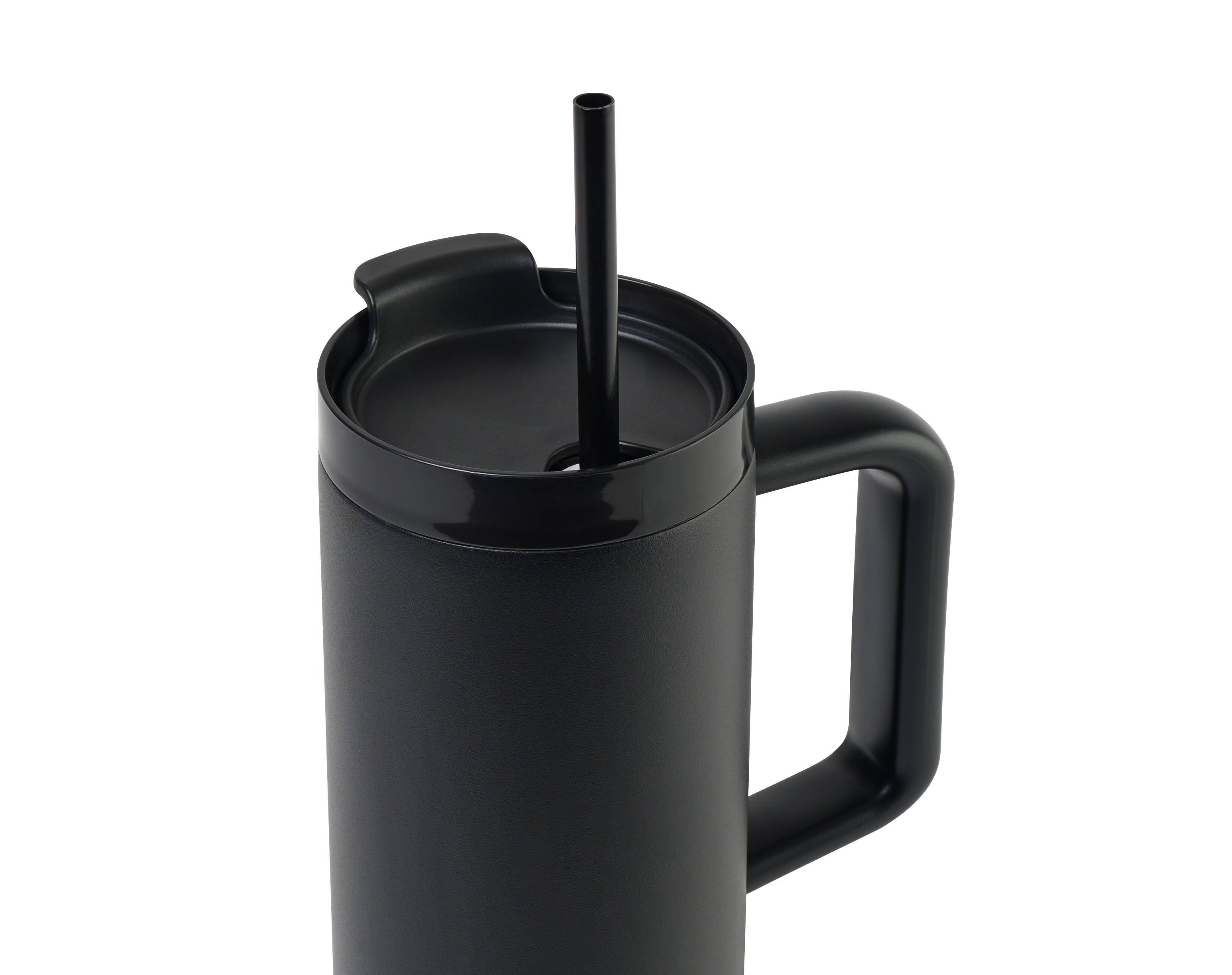 Stay fueled on the move with the 30 oz. Adrian Travel Tumbler. Its double wall stainless steel build and vacuum insulation keep drinks hot or cold, while the rotating hybrid lid lets you sip or straw. With a large handle and leak-resistant design, it’s made for life on the go.