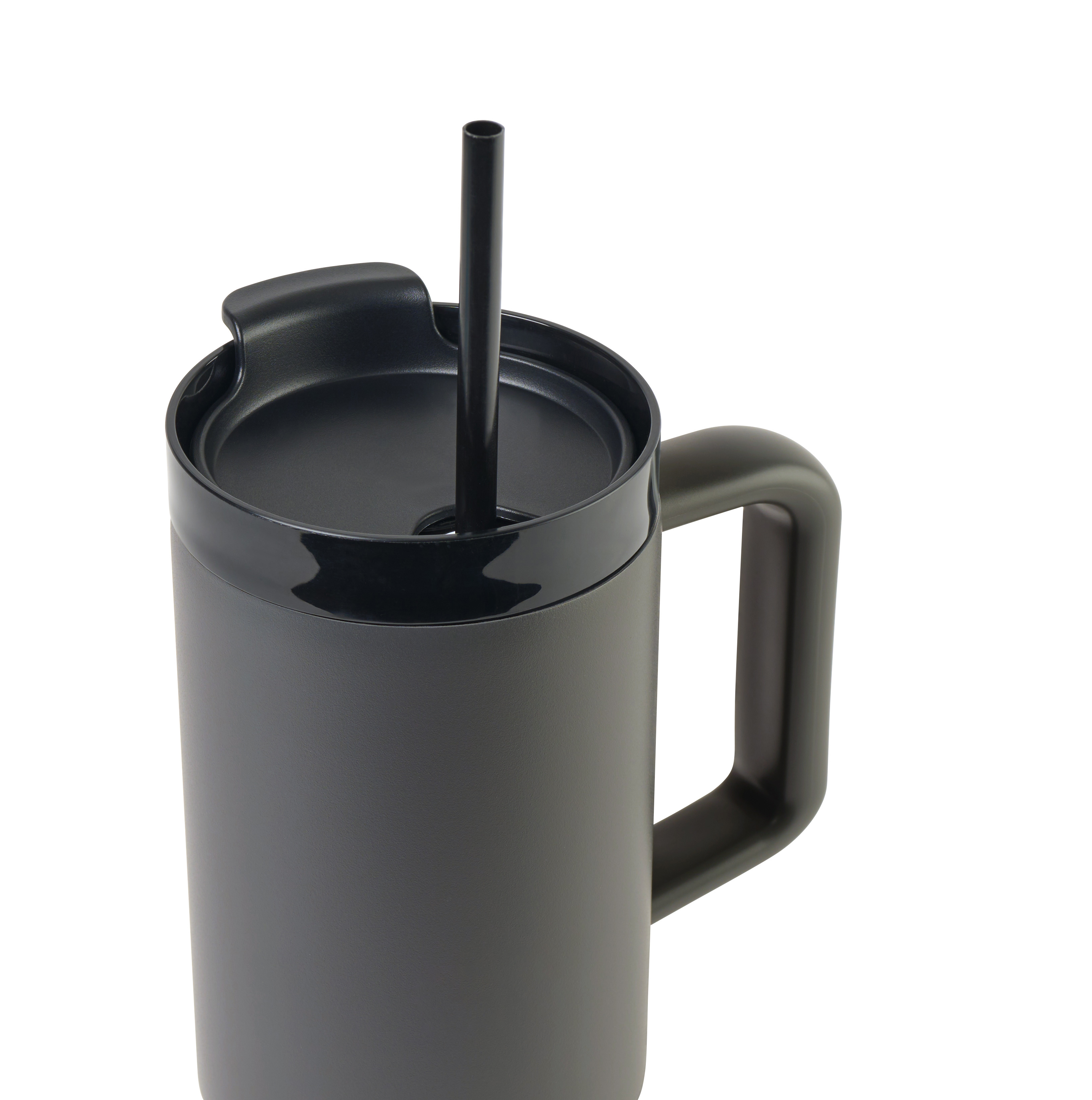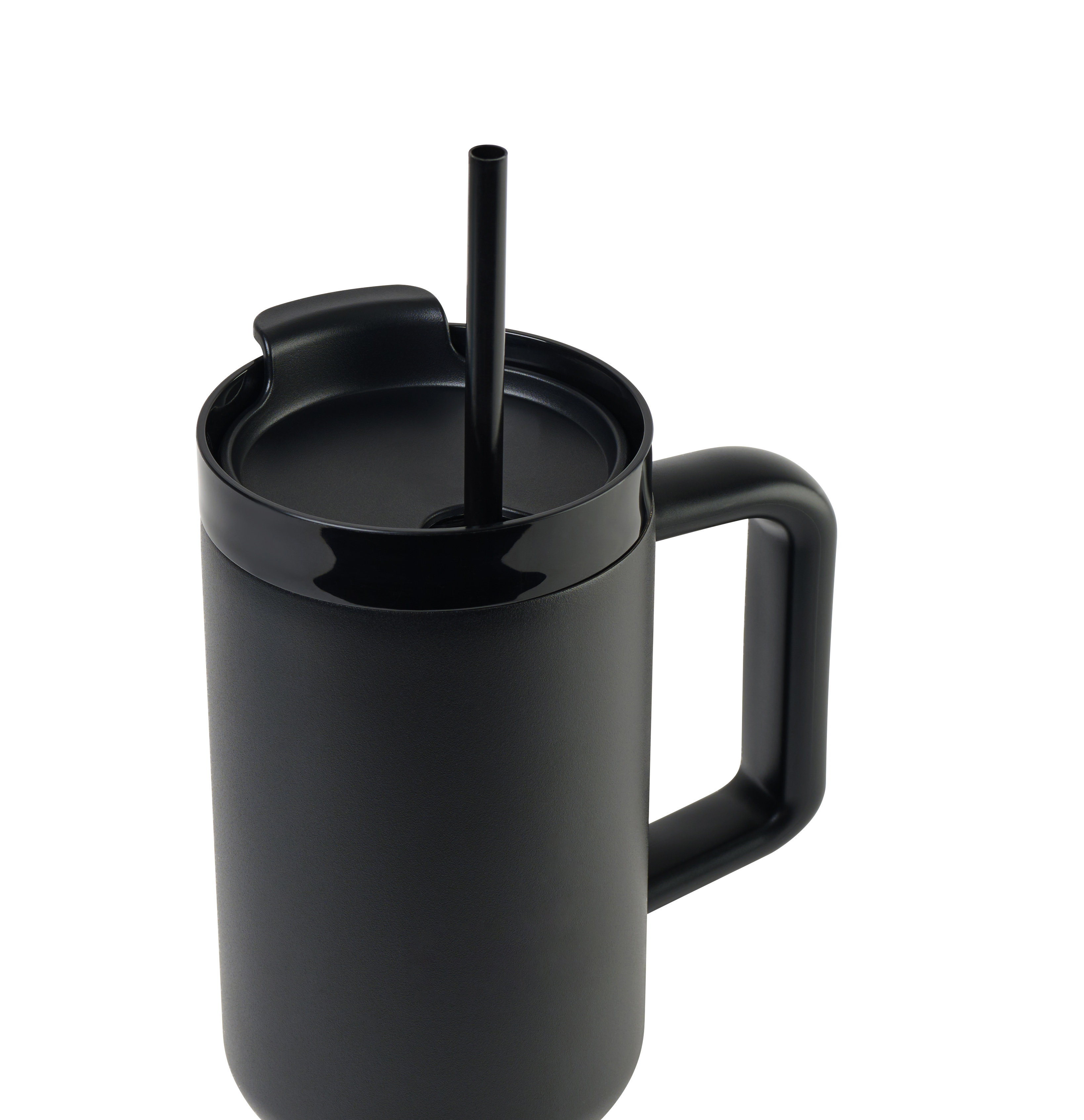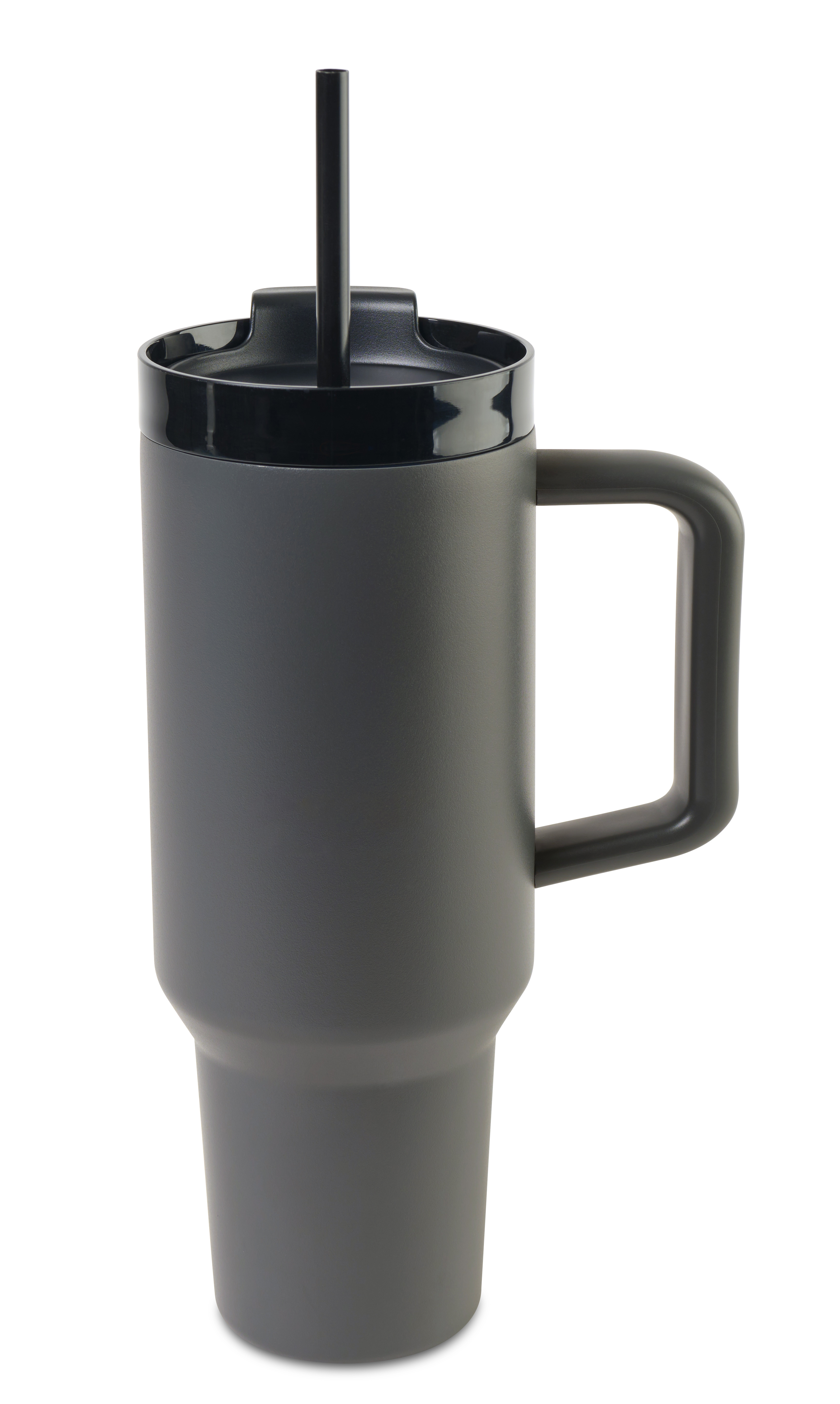 Meet your new go-to tumbler for the road. The 40 oz. Adrian Travel Tumbler keeps drinks hot or cold with double wall stainless steel and vacuum insulation. Its rotating hybrid lid lets you sip or use a straw, while the leak-resistant design and side handle make it perfect for on-the-go hydration.