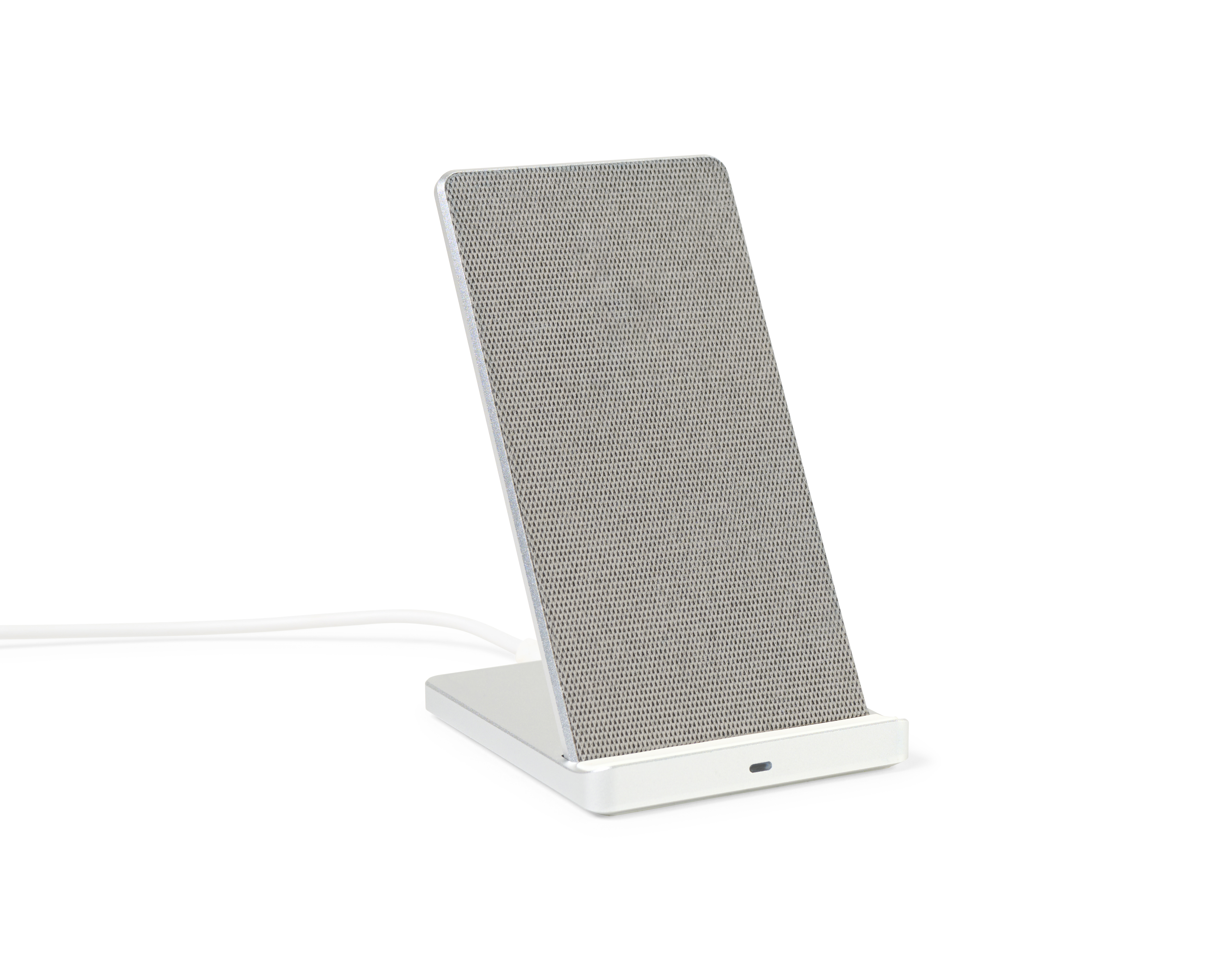 Power meets style with the Auden Aluminum Wireless Charging Stand. Qi-certified and crafted from sleek aluminum with fabric finish, it delivers up to 10W charging in both portrait and landscape modes. Features a stable, non-slip base, LED charging indicator, and USB-C cable—perfect for desk or nightstand use.