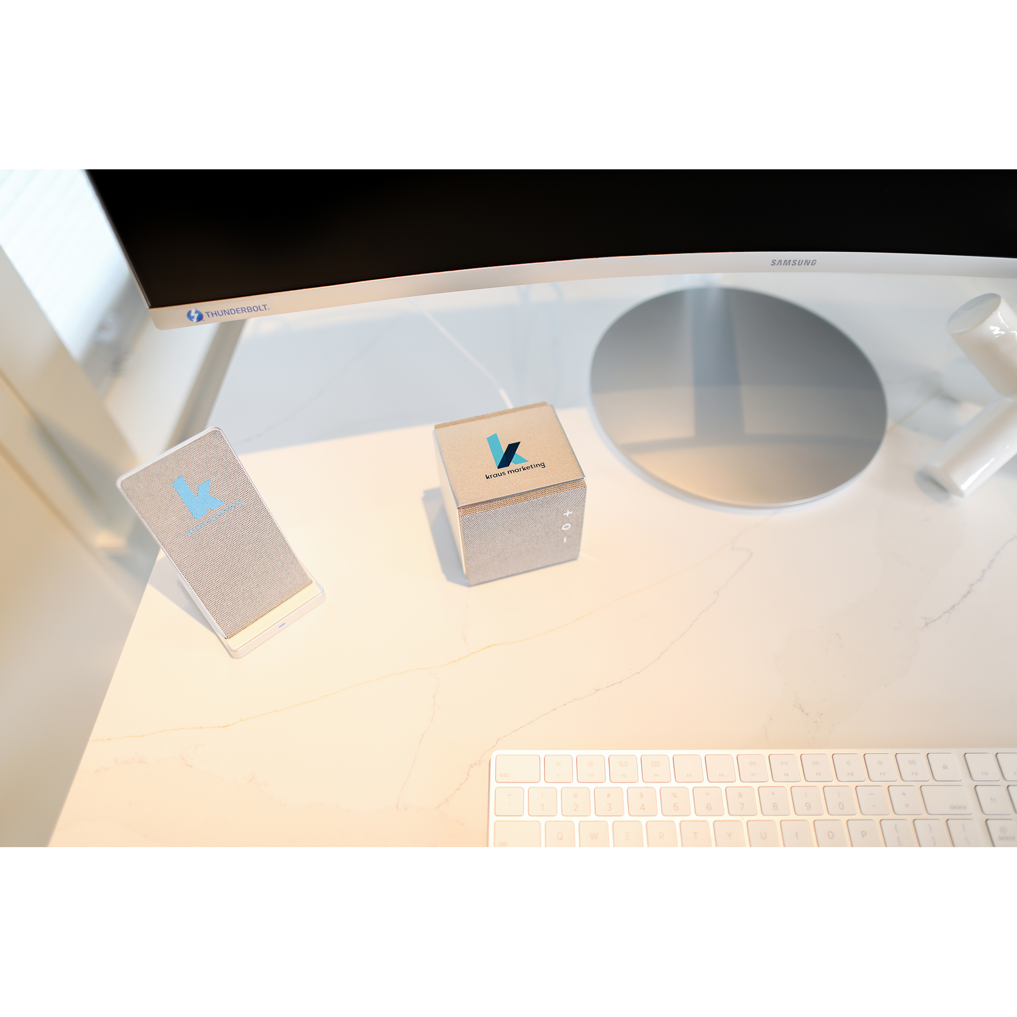 Sleek and powerful, the Auden Aluminum Wireless Speaker pairs effortlessly with Bluetooth devices for bold sound on the go. With a modern aluminum design, fabric finish, built-in mic, and touch controls, it's made for music and calls. Includes USB-C charging cable and stand with non-slip feet for steady playtime anywhere.