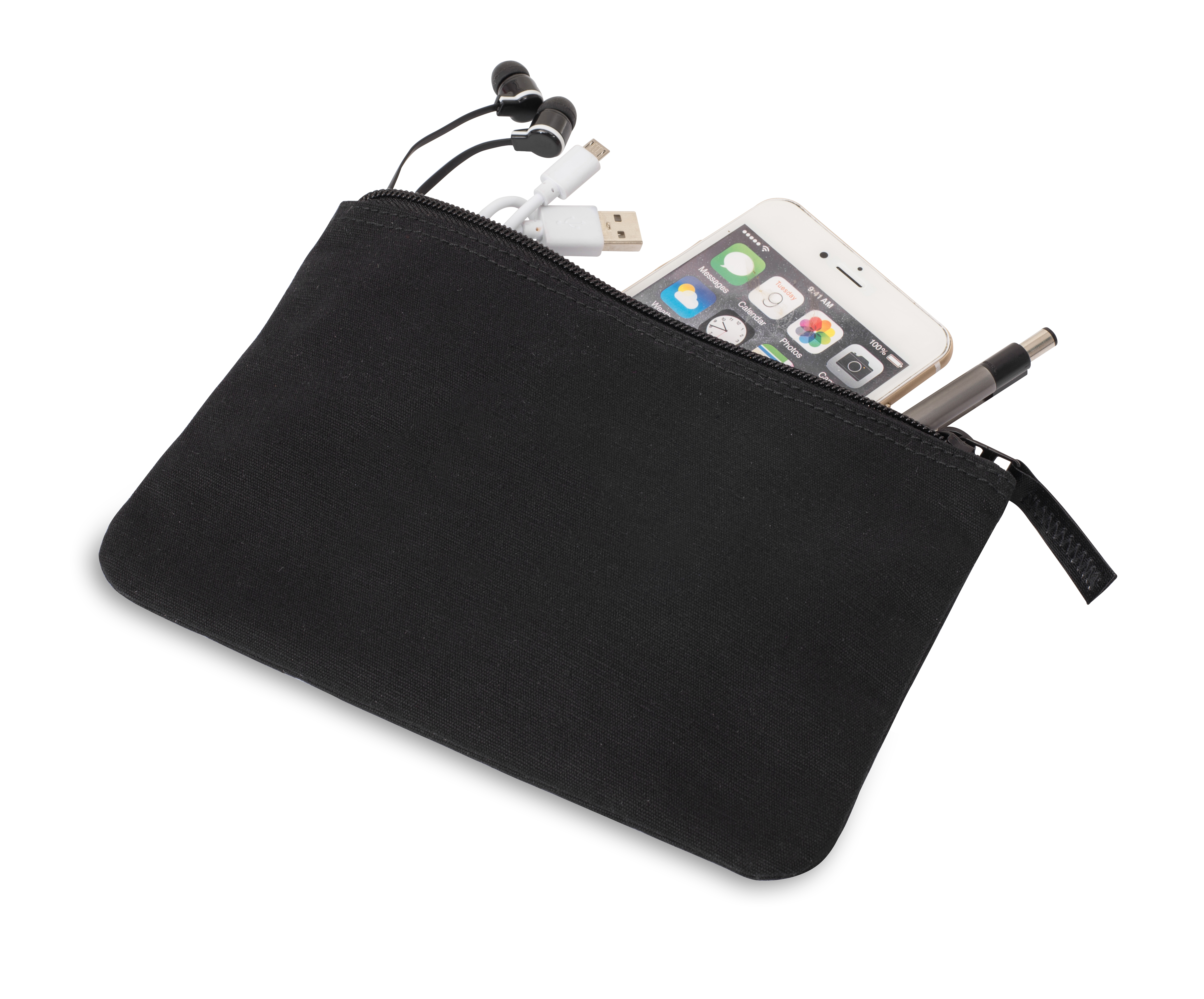Top zippered closure secures contents and interior pocket divider for additional organization