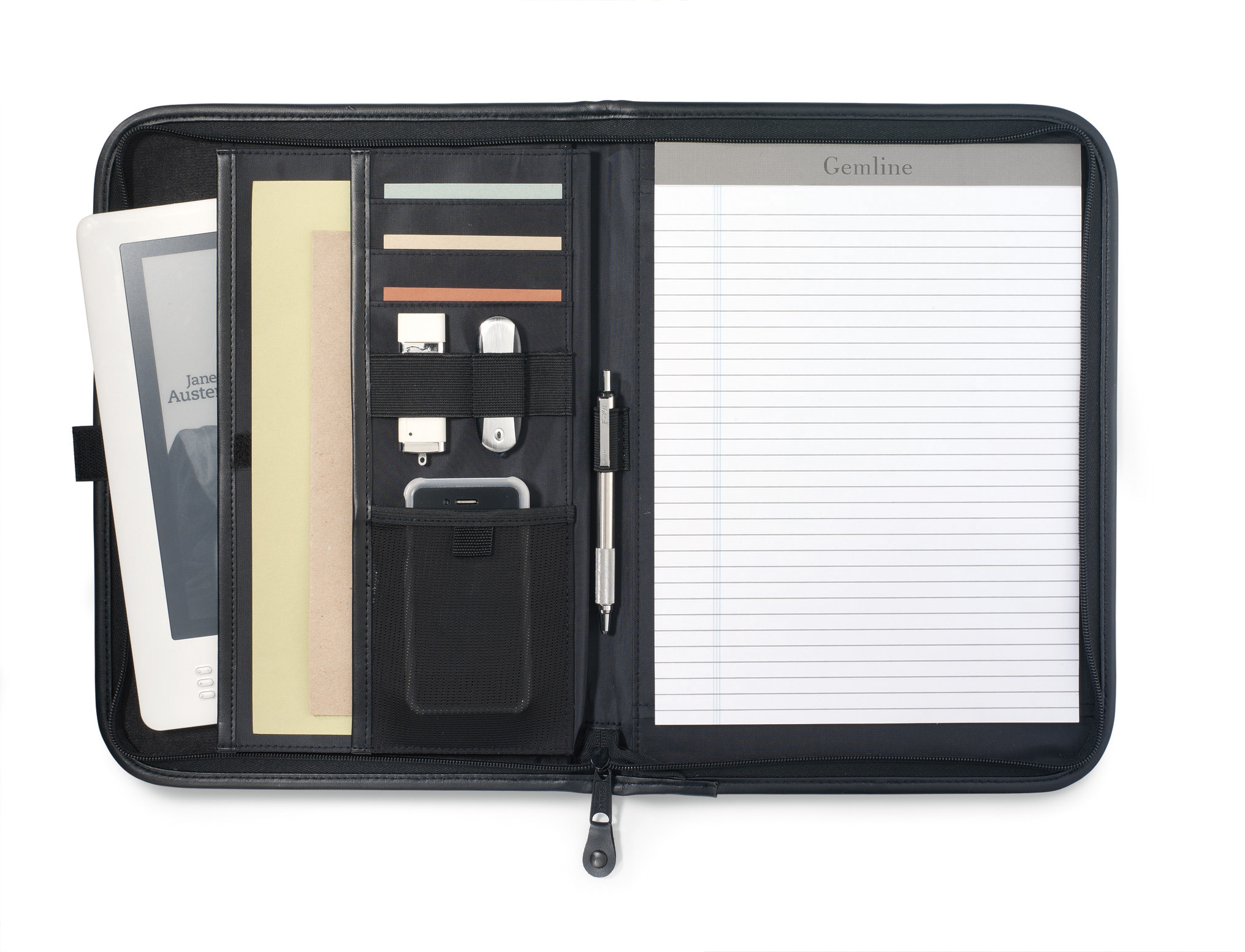 The Delegate e-padfolio is always up to the task! Made of simulated leather, this stylish e-padfolio features a zippered closure, multi-function organizer, scratch-resistant pocket with a hook and loop tab closure that fits up to a 10 tablet, mesh pocket, pen loop and 8 1/2 x 11 paper pad. This fantastic favor also accommodates an A4 paper pad and is perfect for any business or event. Have your logo debossed or silkscreened for brand recognition today!