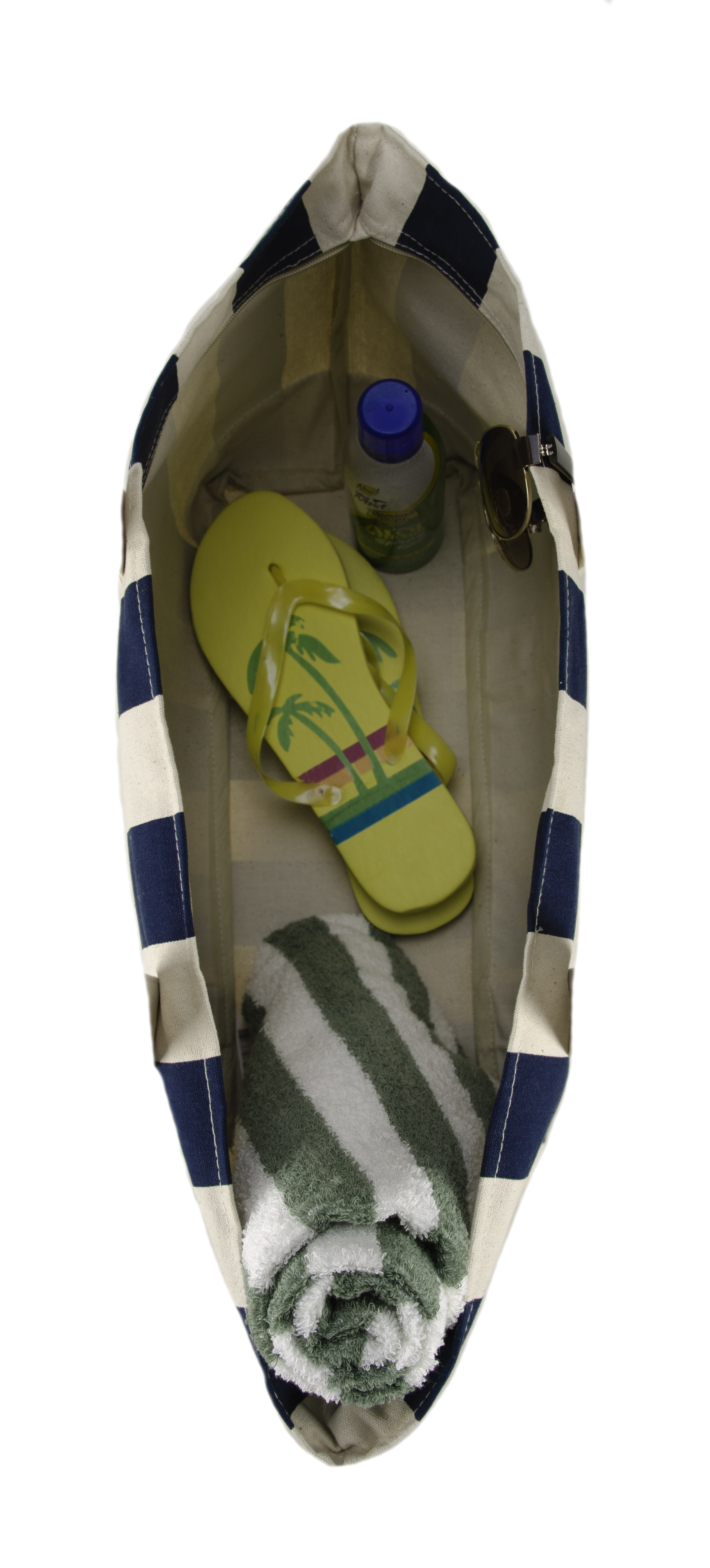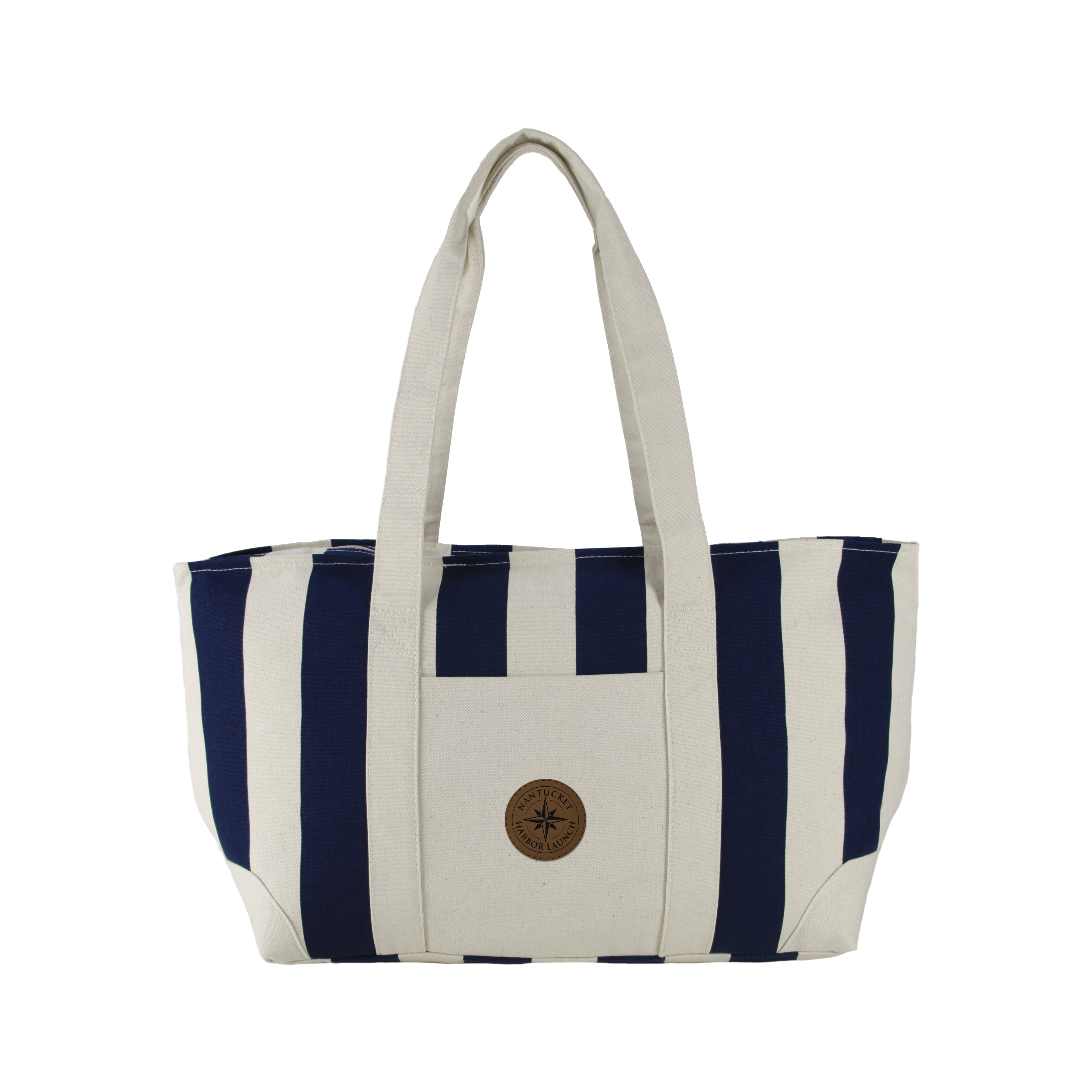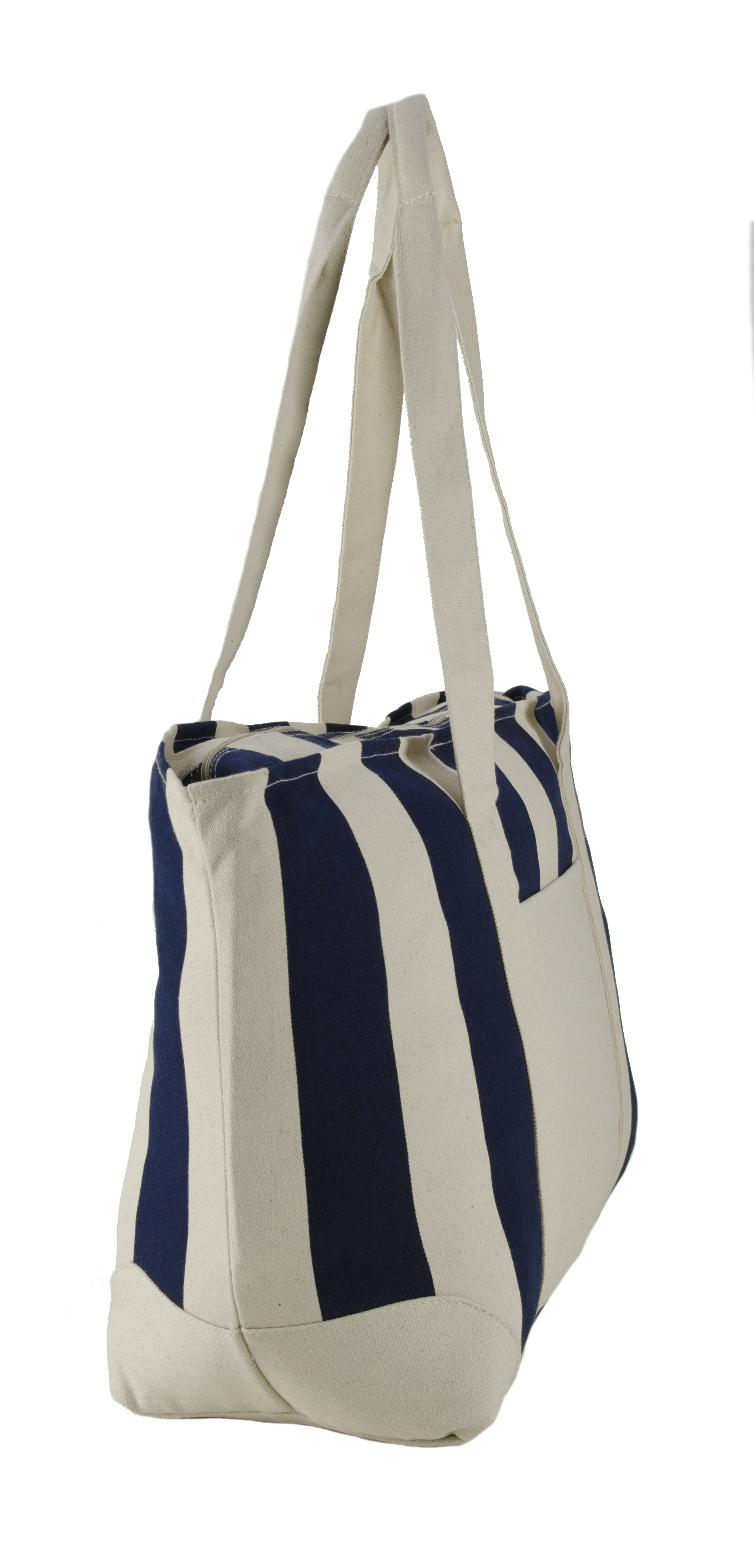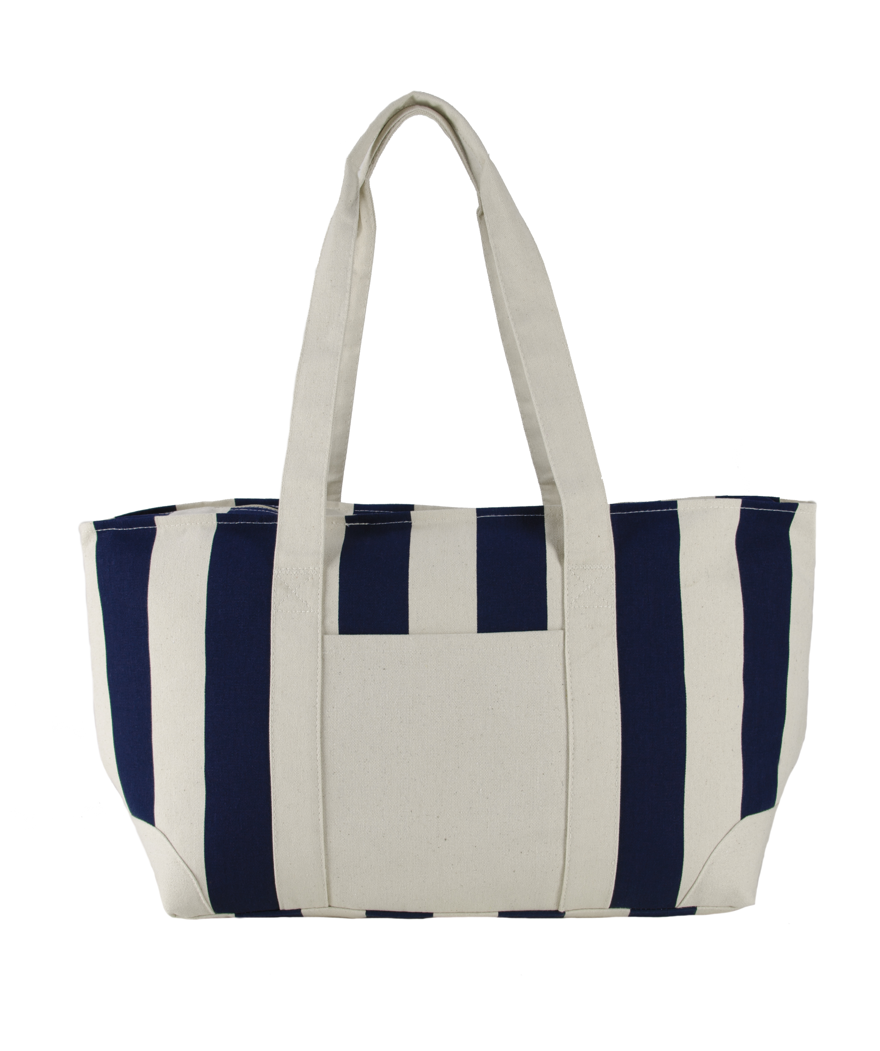 Clients will be impressed with the Large Striped Canvas Tote as your next giveaway item! This 25L x 13H x 7W tote bag is made out of 12 oz. cotton and is equipped with 28 shoulder straps. The classic yet functional striped canvas tote also features a zippered gusset top and open front pocket. If you want to make this promotional product a real hit, imprint a company name or logo for brand awareness!