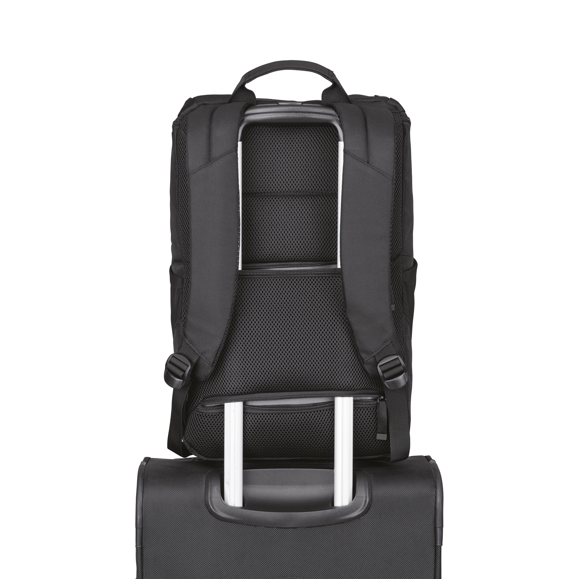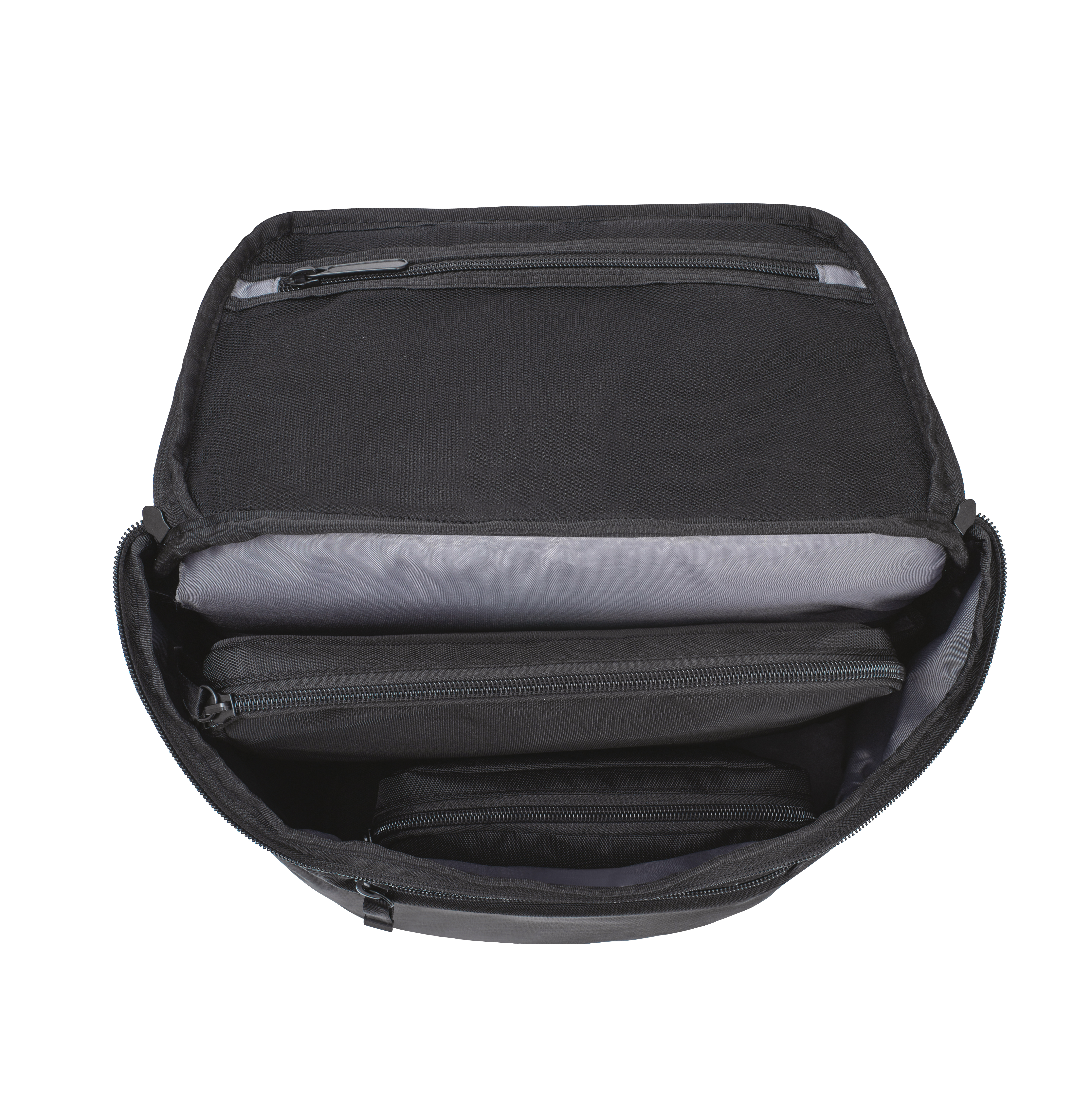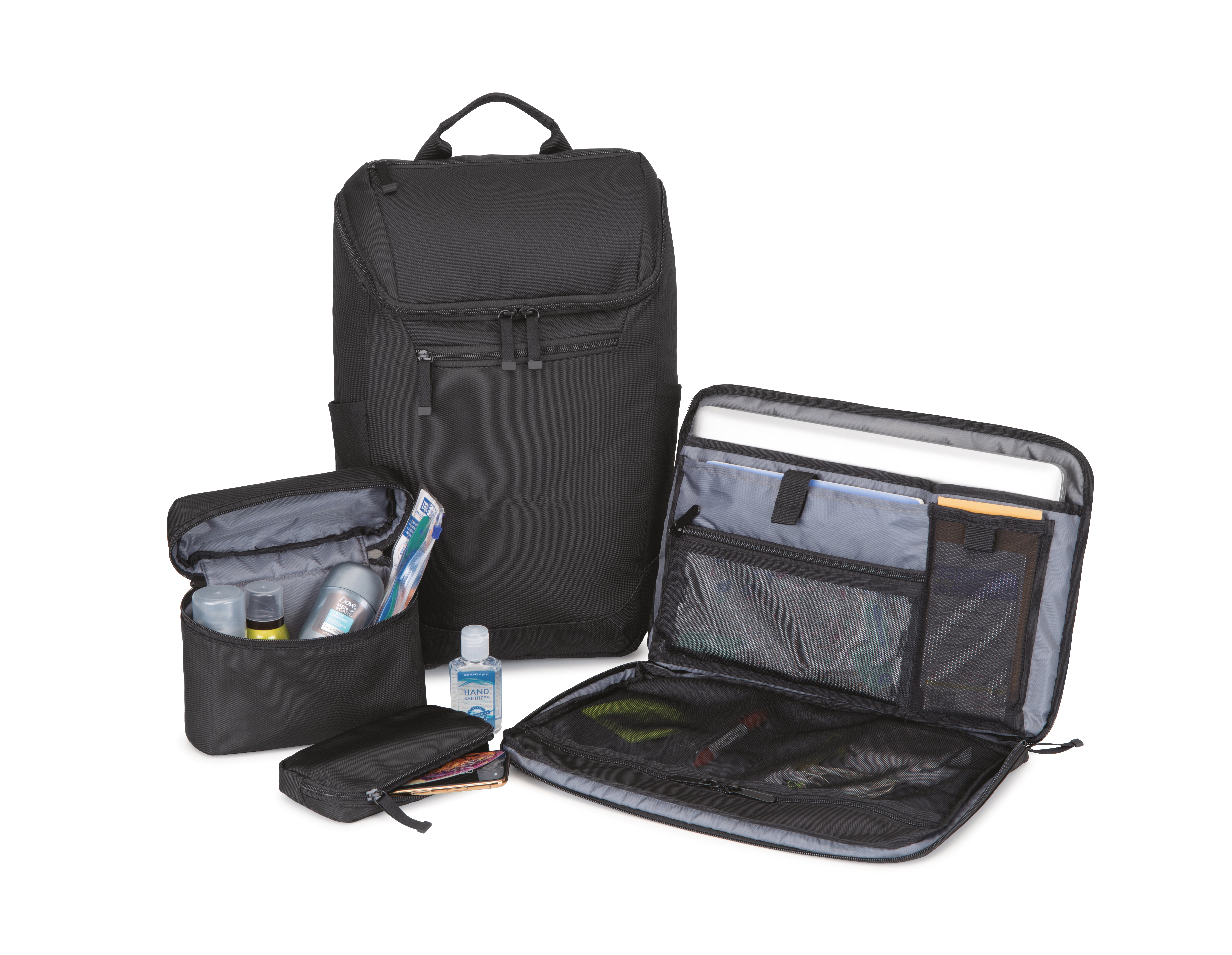 Designed for the mobile professional, this backpack features dual main compartments, padded laptop protection, and three detachable organizers for streamlined storage. A trolley strap, padded straps, and smart pockets make it travel- and commute-ready. PVC Free.