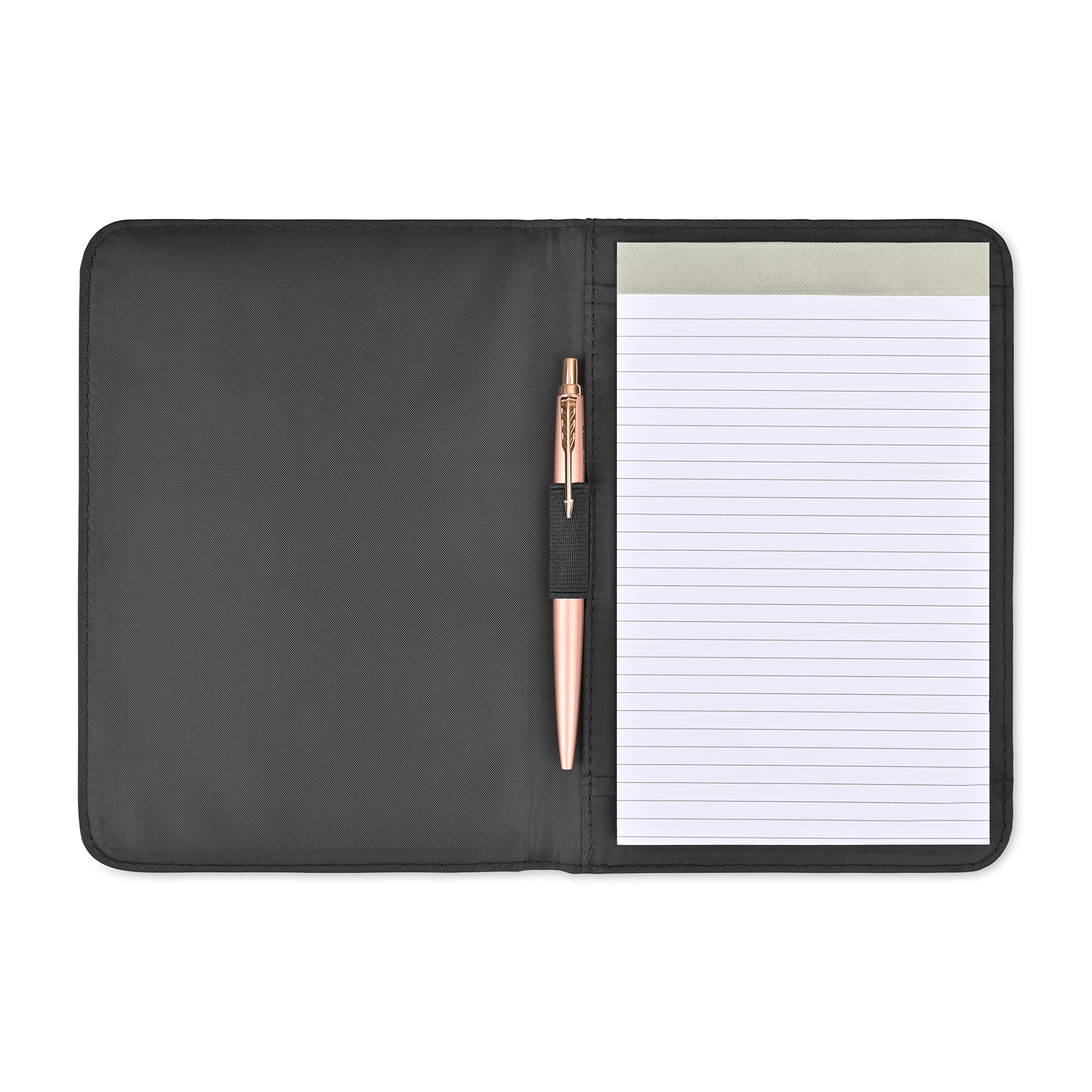 Compact and versatile, the Morgan Junior Writing Pad offers a modern vegan leather design with a 5" x 8" FSC-certified paper pad. With a reversible layout for right- or left-handed use and an elastic pen loop, it’s the perfect everyday organizer.