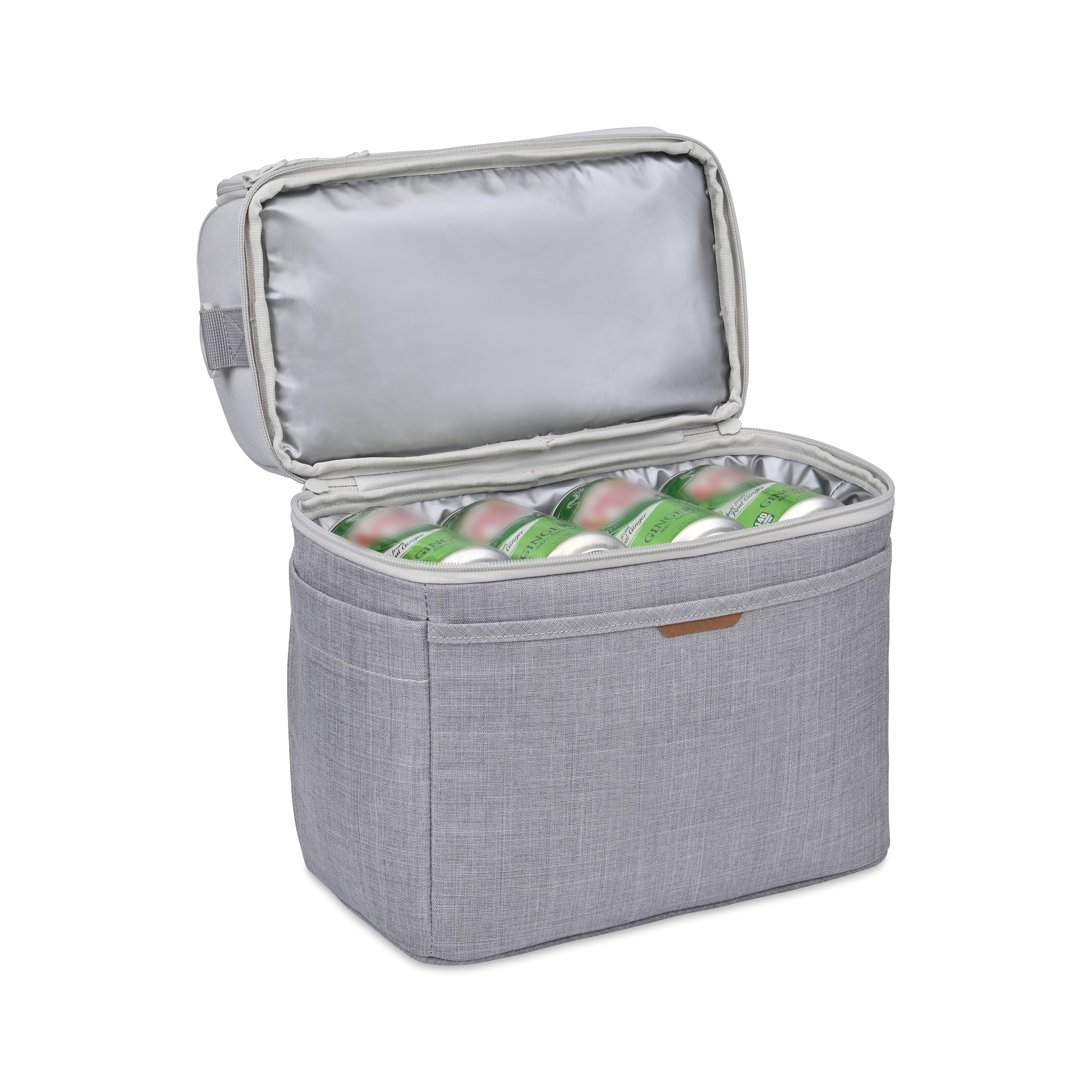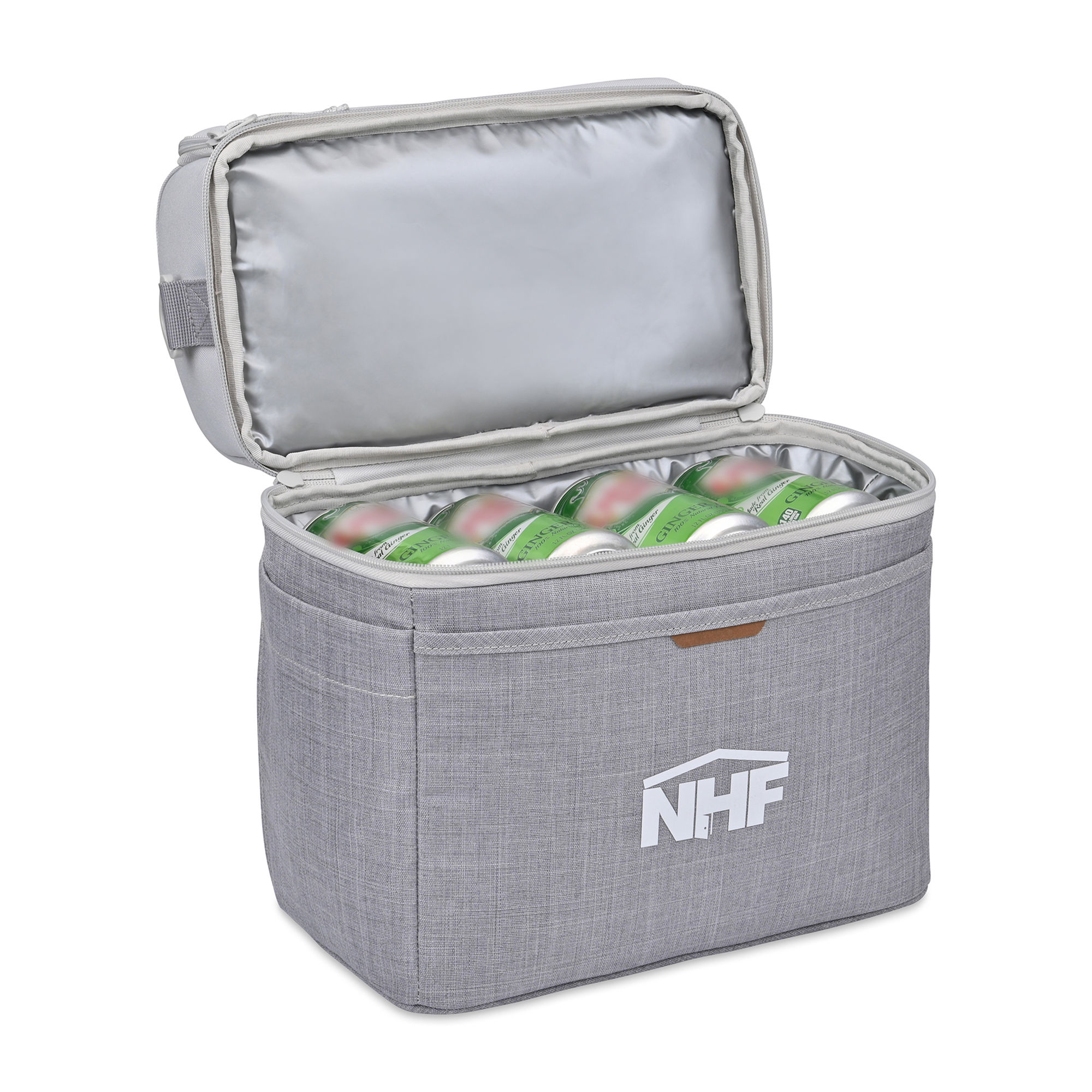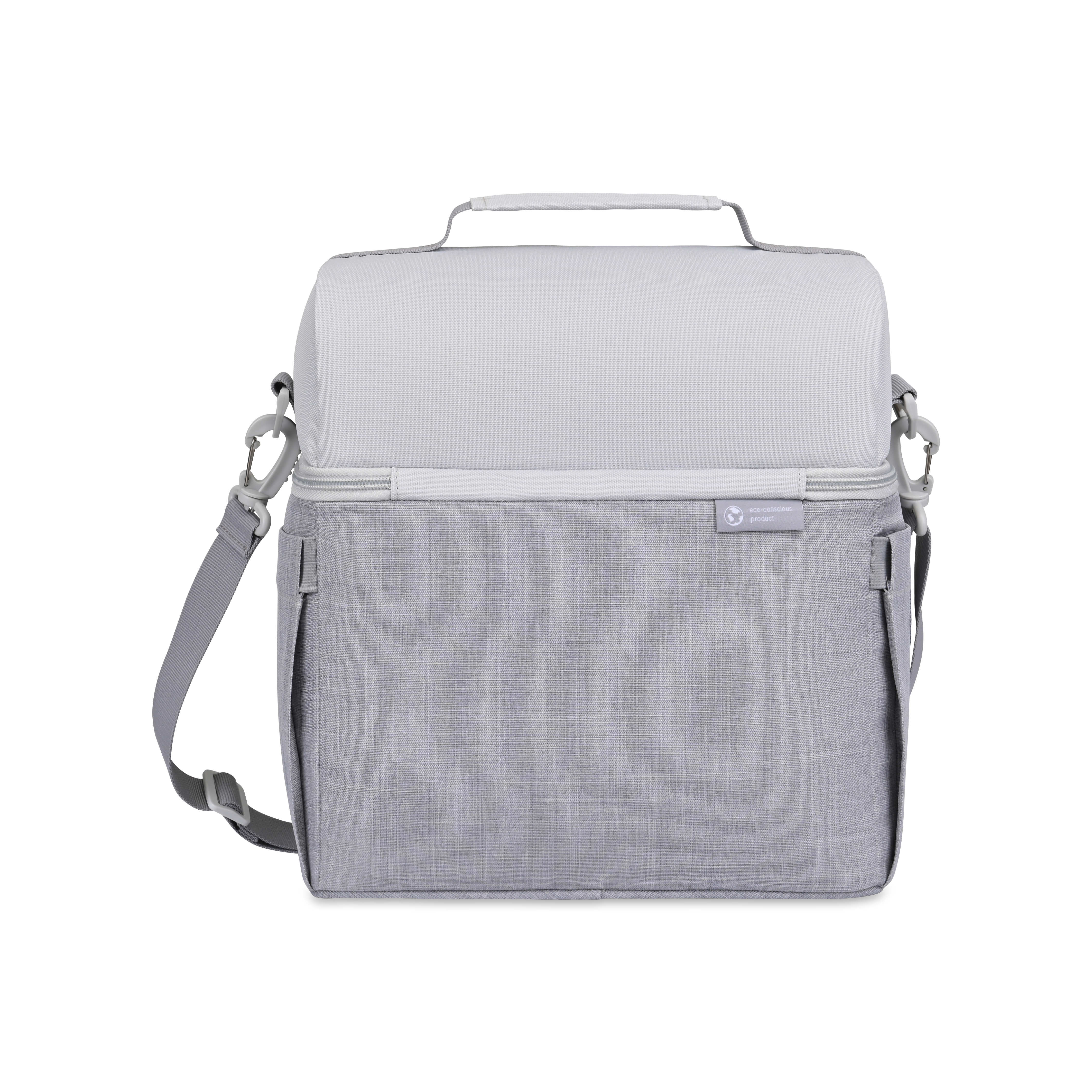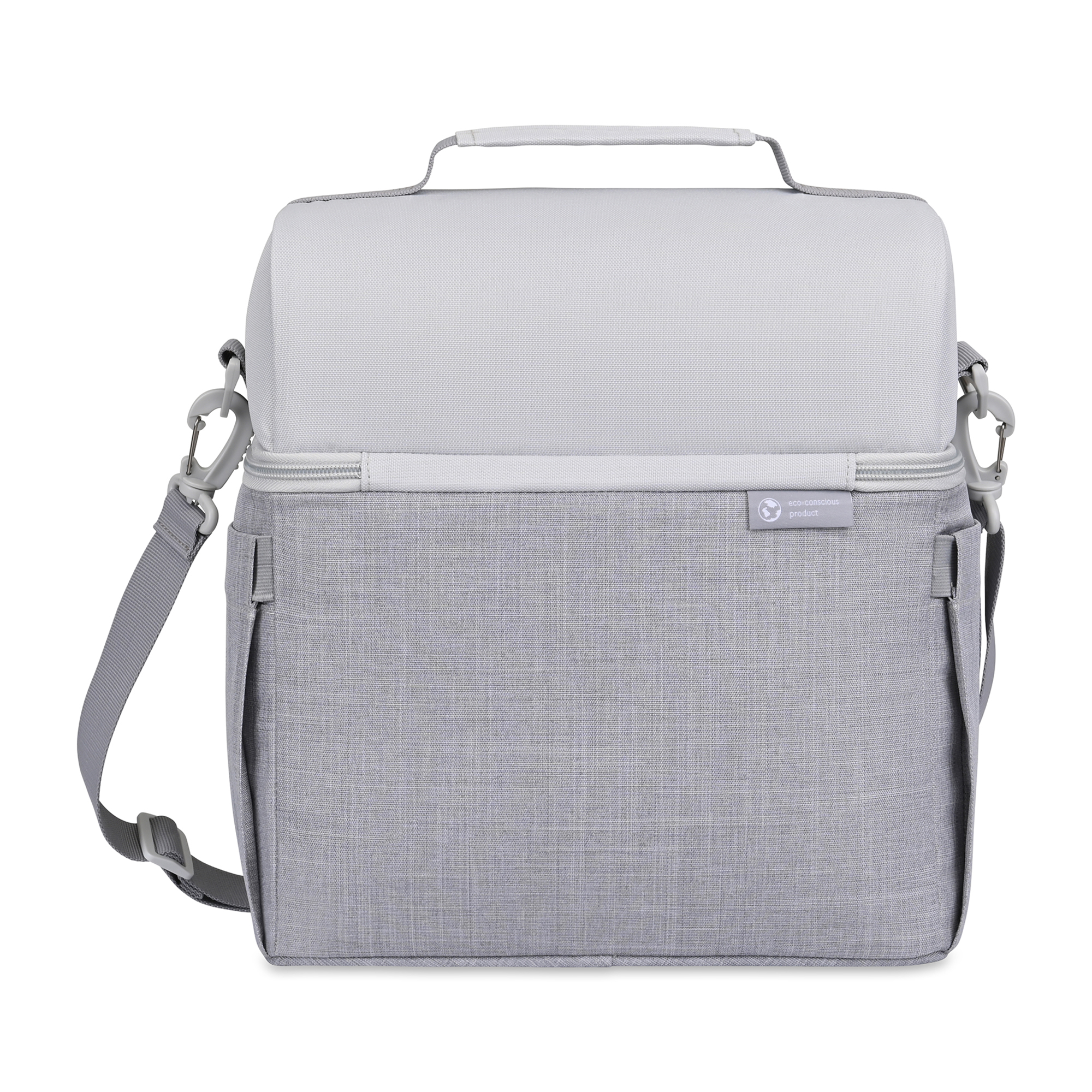 The Parkview Lunch Box Cooler combines sustainability and style with a fresh color-block design. Made with recycled materials, it features a spacious insulated main compartment, a separate top cooler section, side water bottle pockets, and a front slash pocket for extras. Carry it your way with a top grab handle or adjustable shoulder strap. Easy to wipe clean and sized to hold up to 18 cans, it’s perfect for lunch on the go, workdays, or weekend outings.