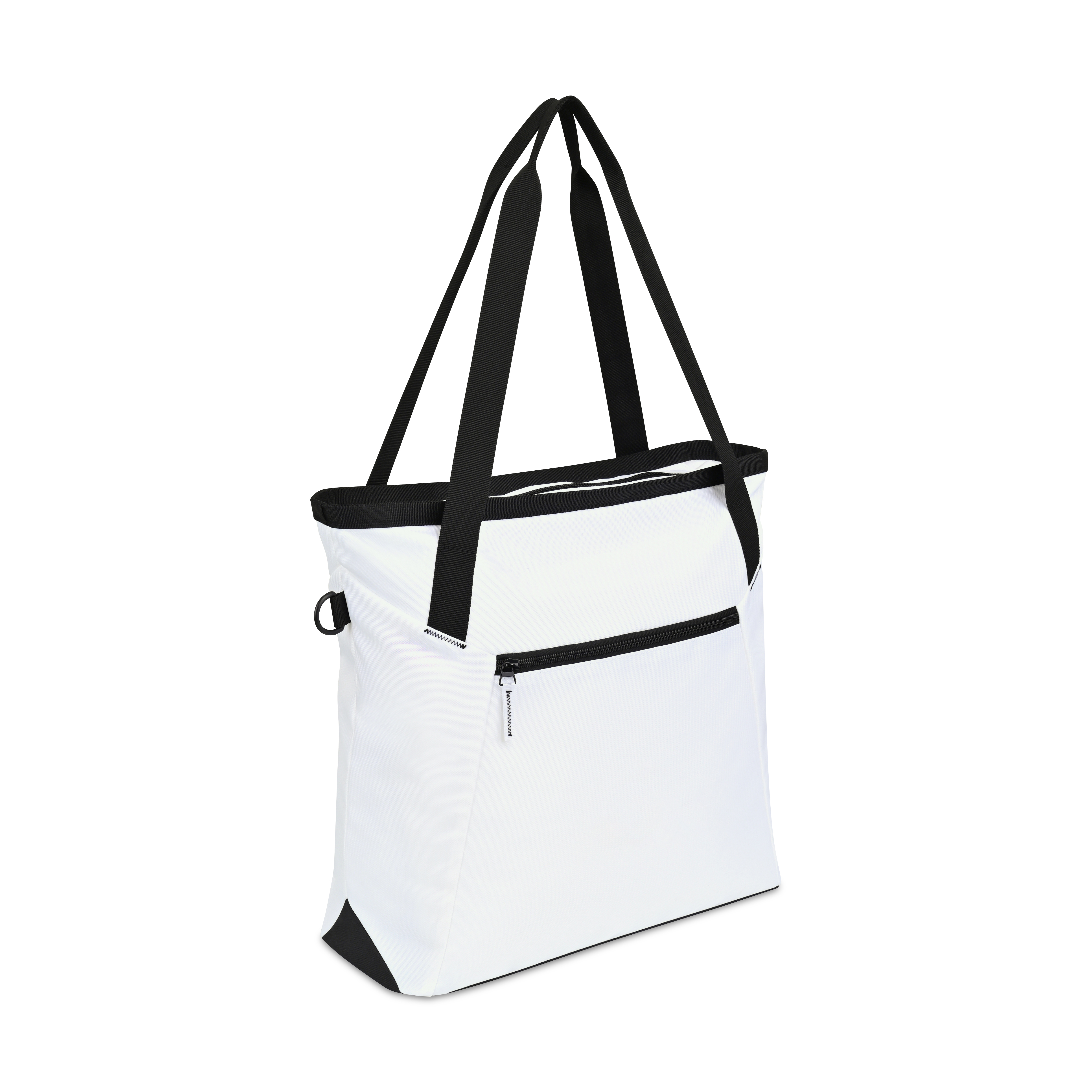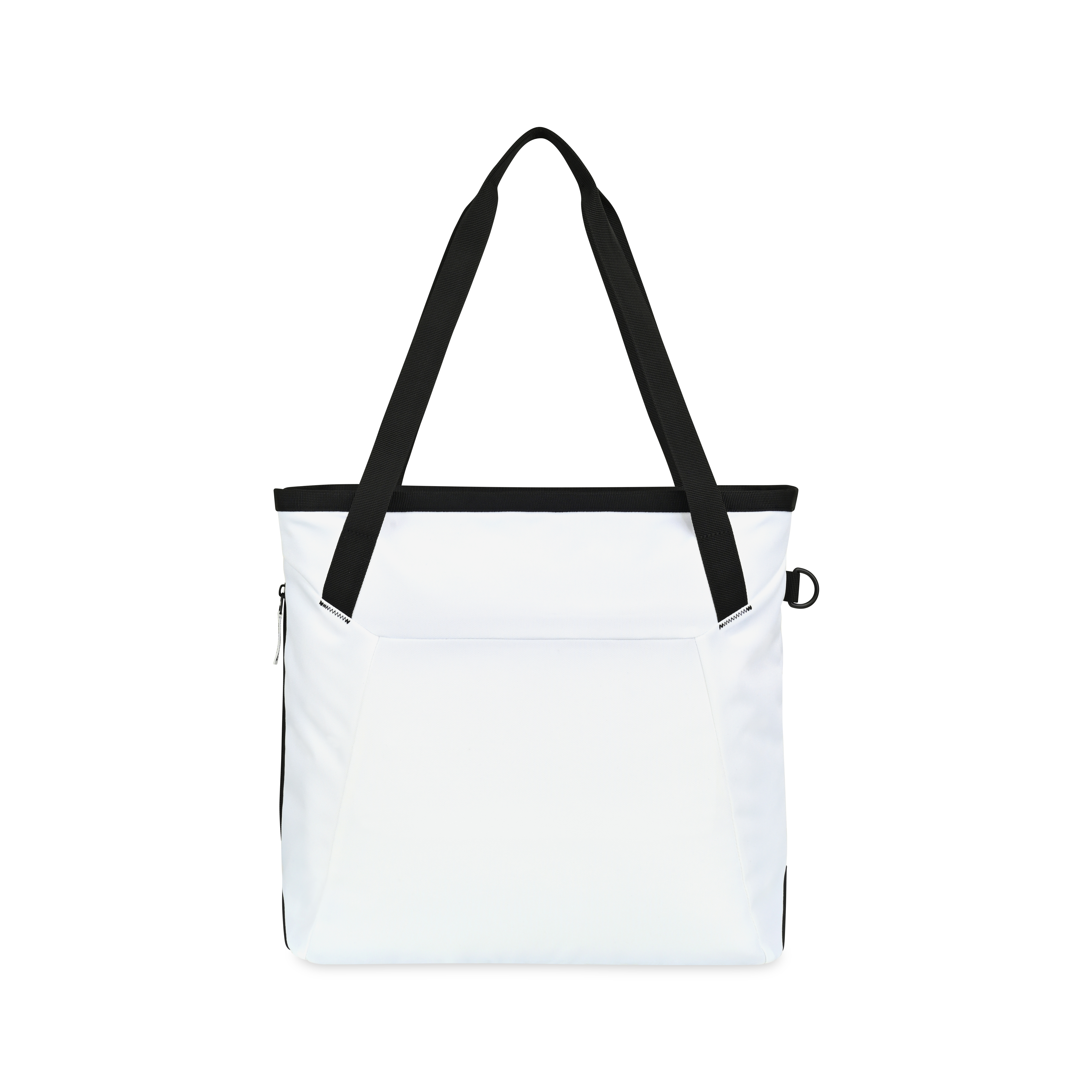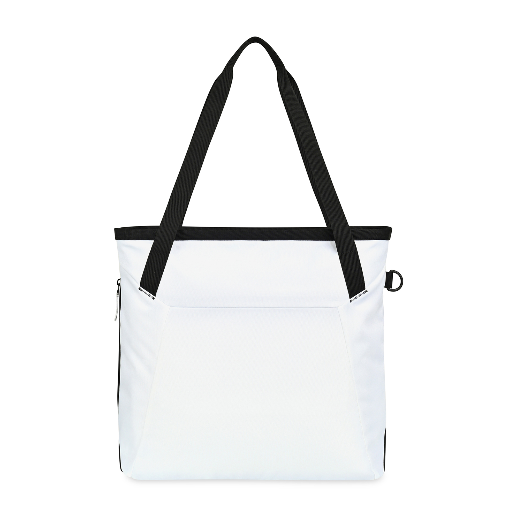 Game, set, carry. The Rally Recycled Courtside Tote is made from 100% recycled materials and designed to fit rackets securely with its zippered top. Multiple pockets—including side, interior, and front—keep gear organized, while a D-ring adds quick access for keys or sunscreen. Finished with top grab handles for easy carry.