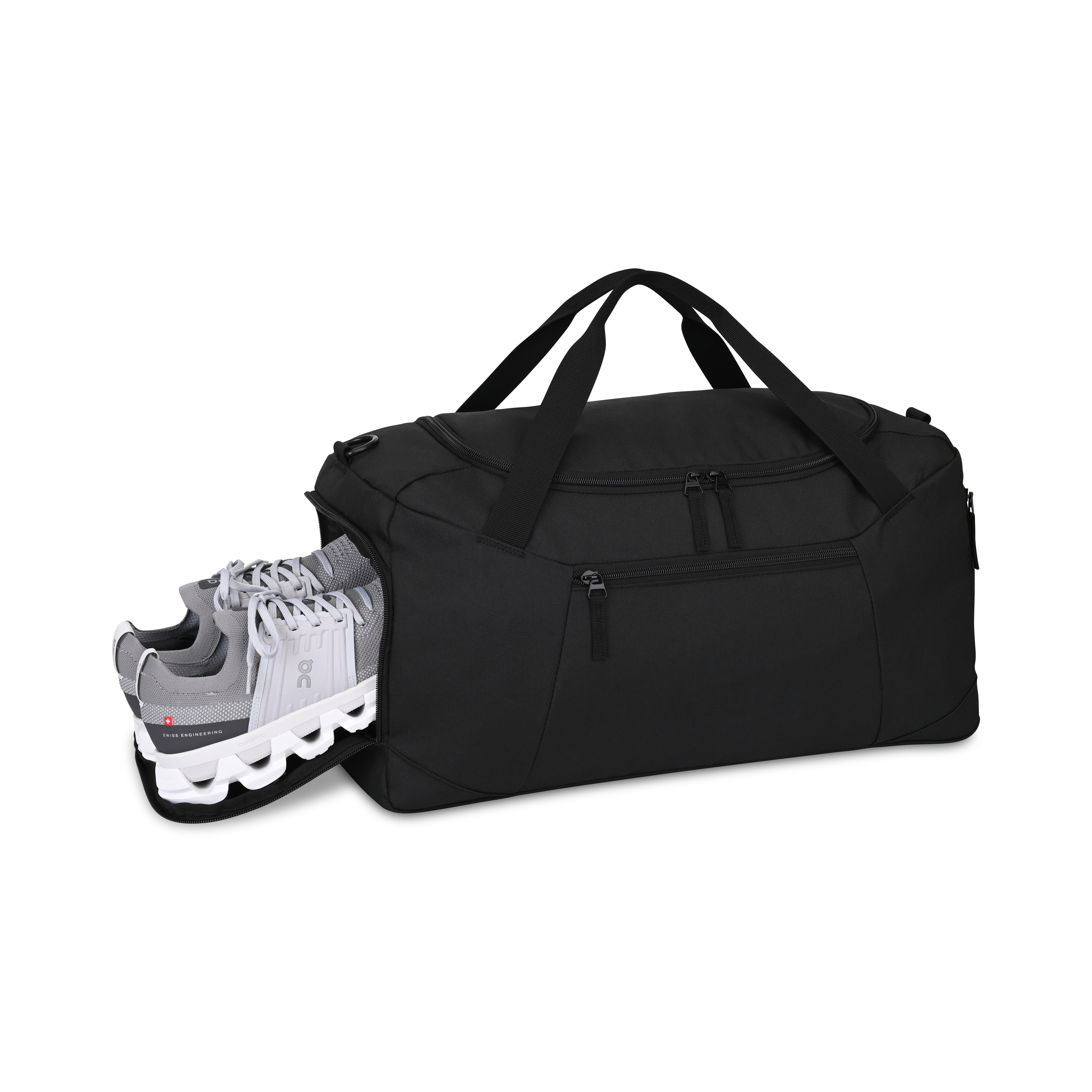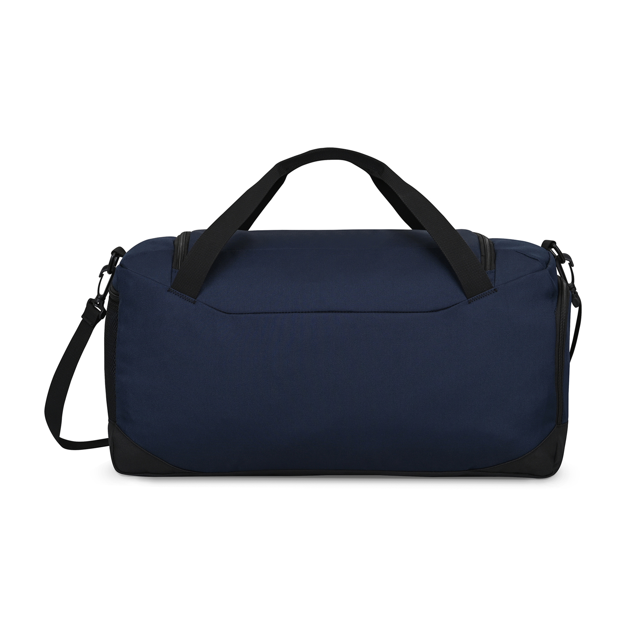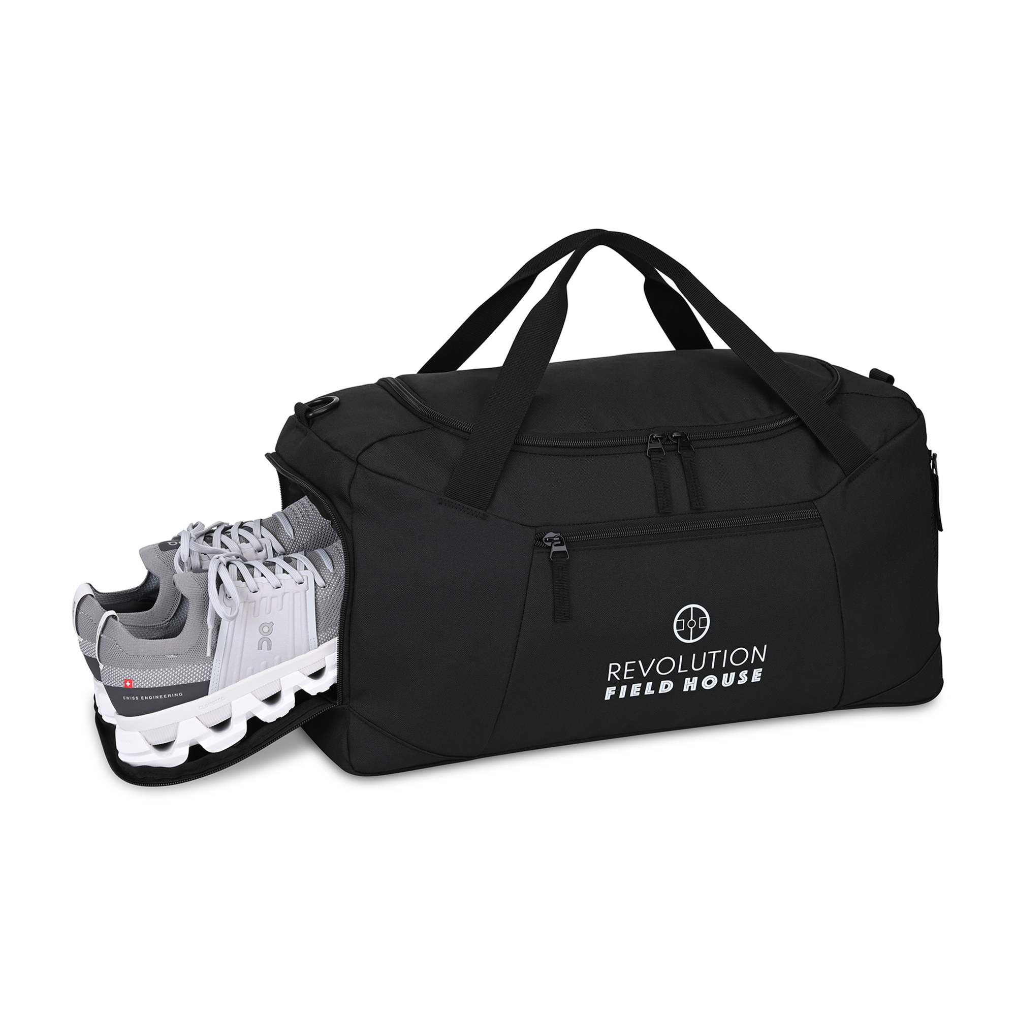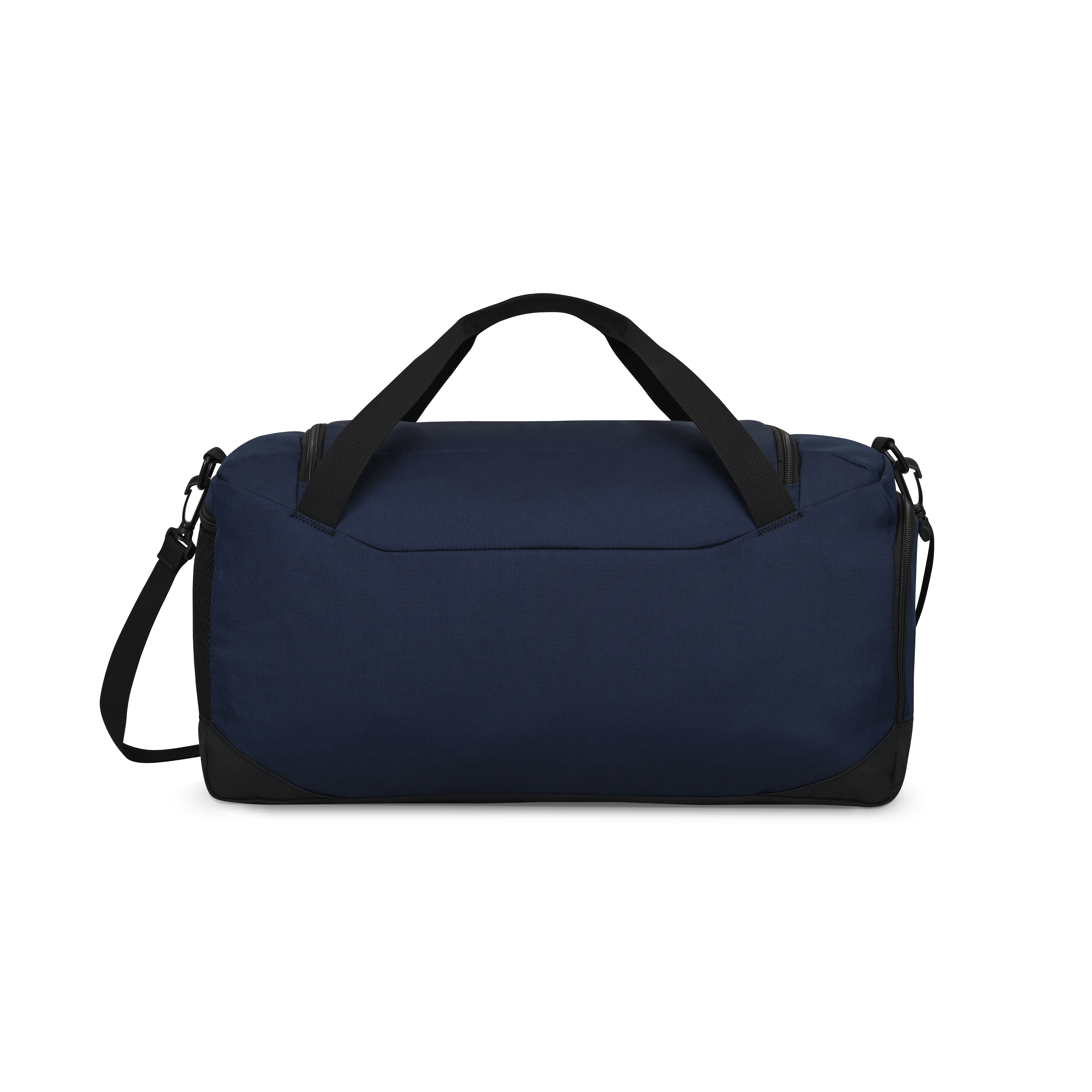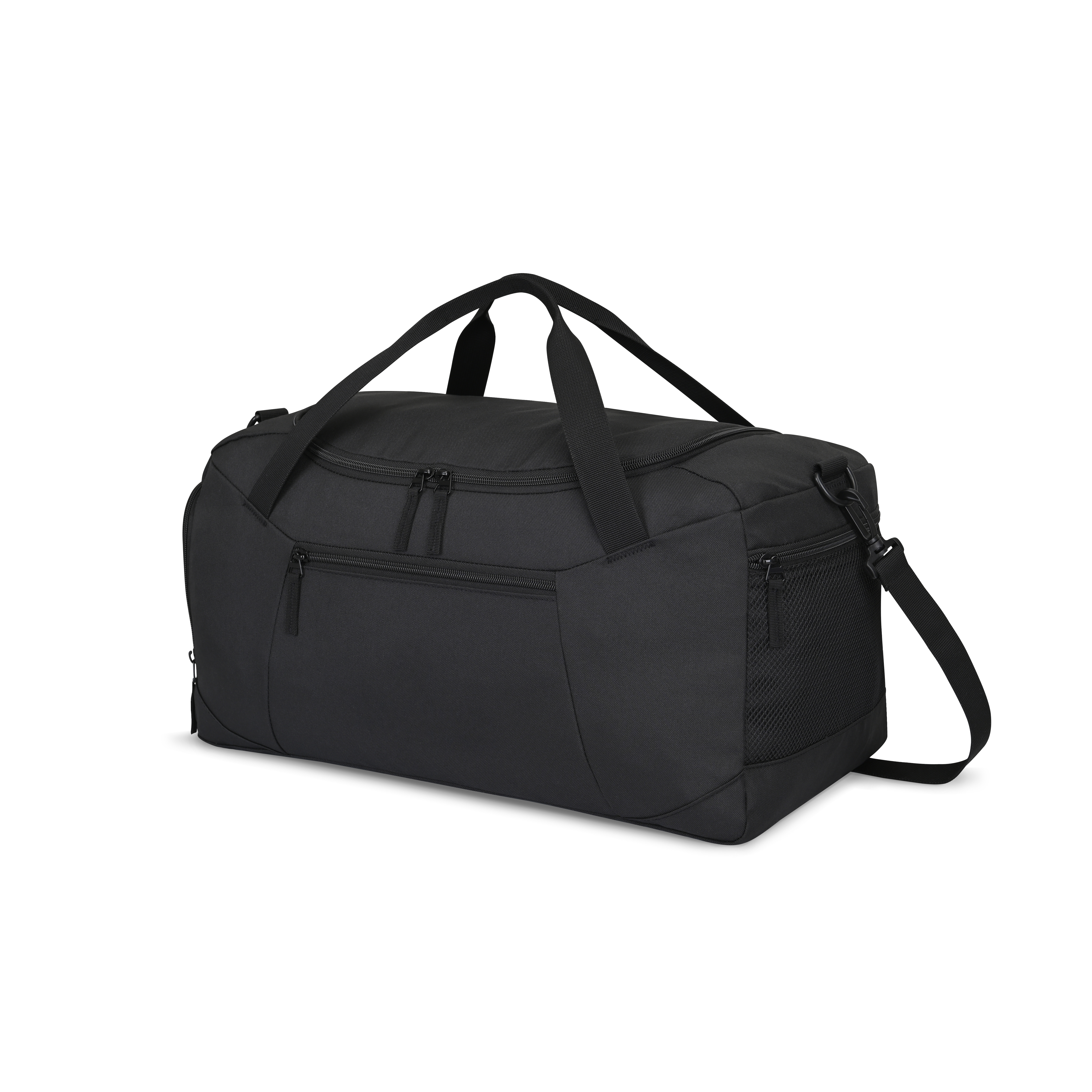 Gear up and go. The Rally Recycled Deluxe Sport Duffel is crafted from 100% recycled materials with a spacious main compartment, shoe tunnel, mesh stash pocket, and zippered front pocket for easy organization. Finished with sturdy grab handles and an adjustable, removable shoulder strap for versatile carry—perfect for gym, sports, or travel.