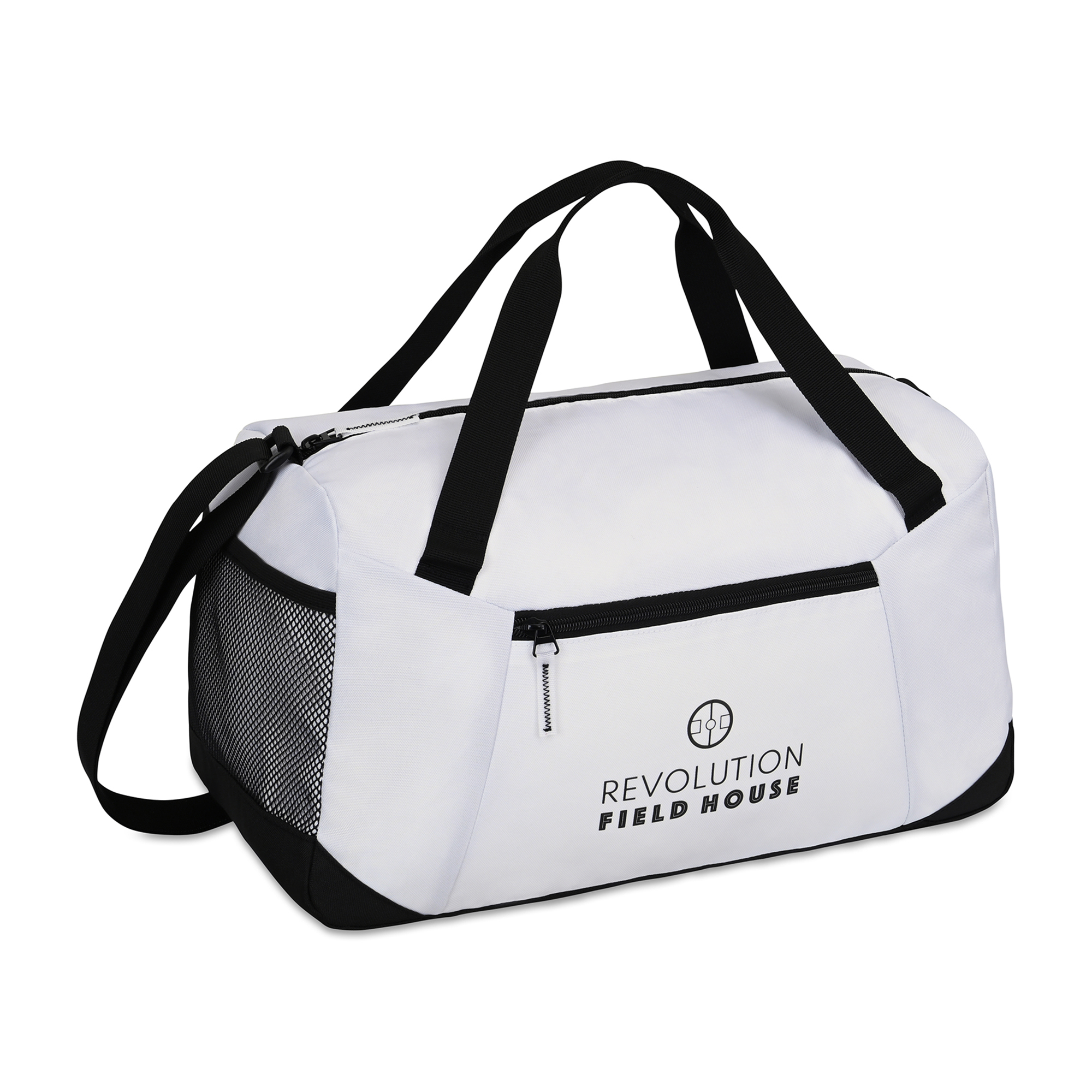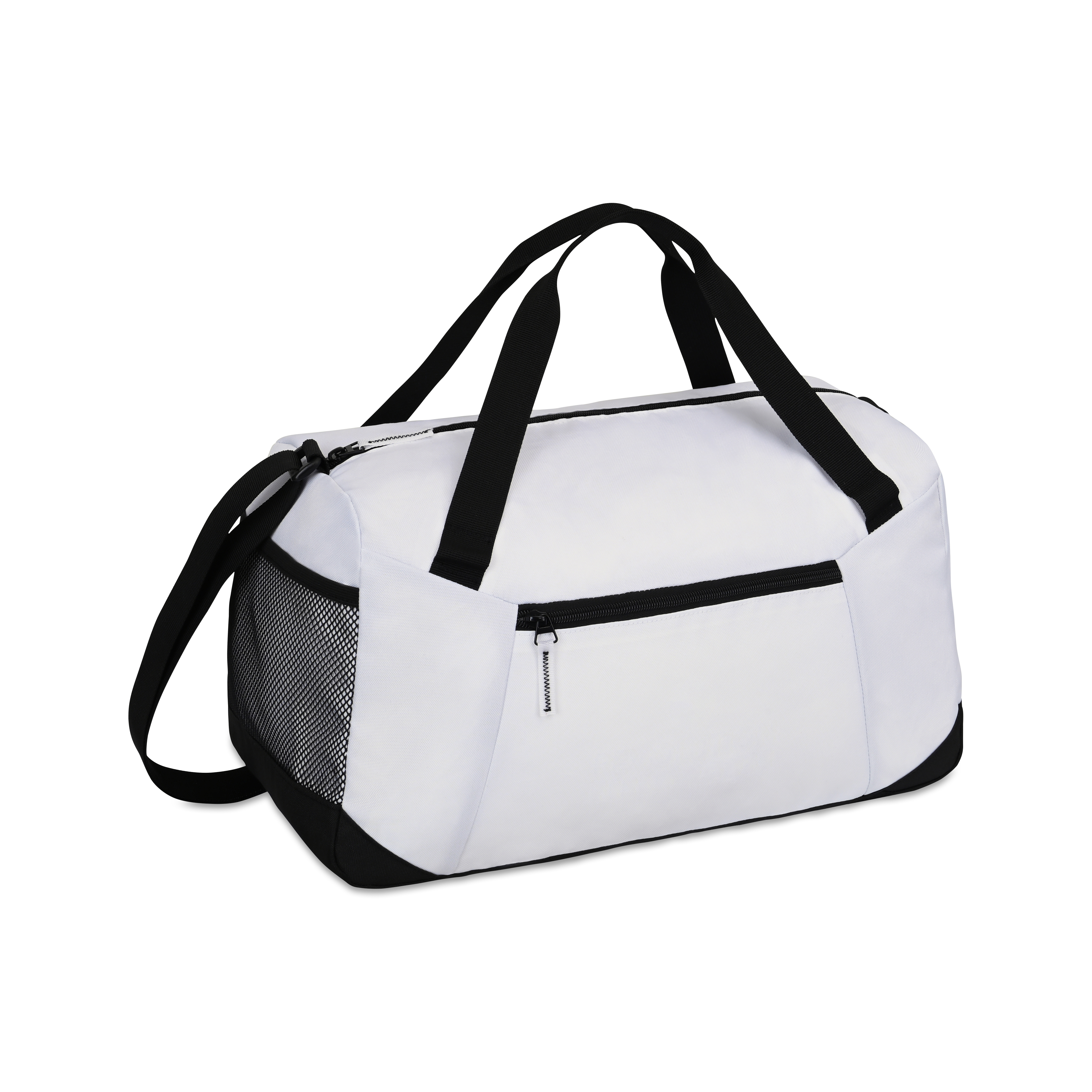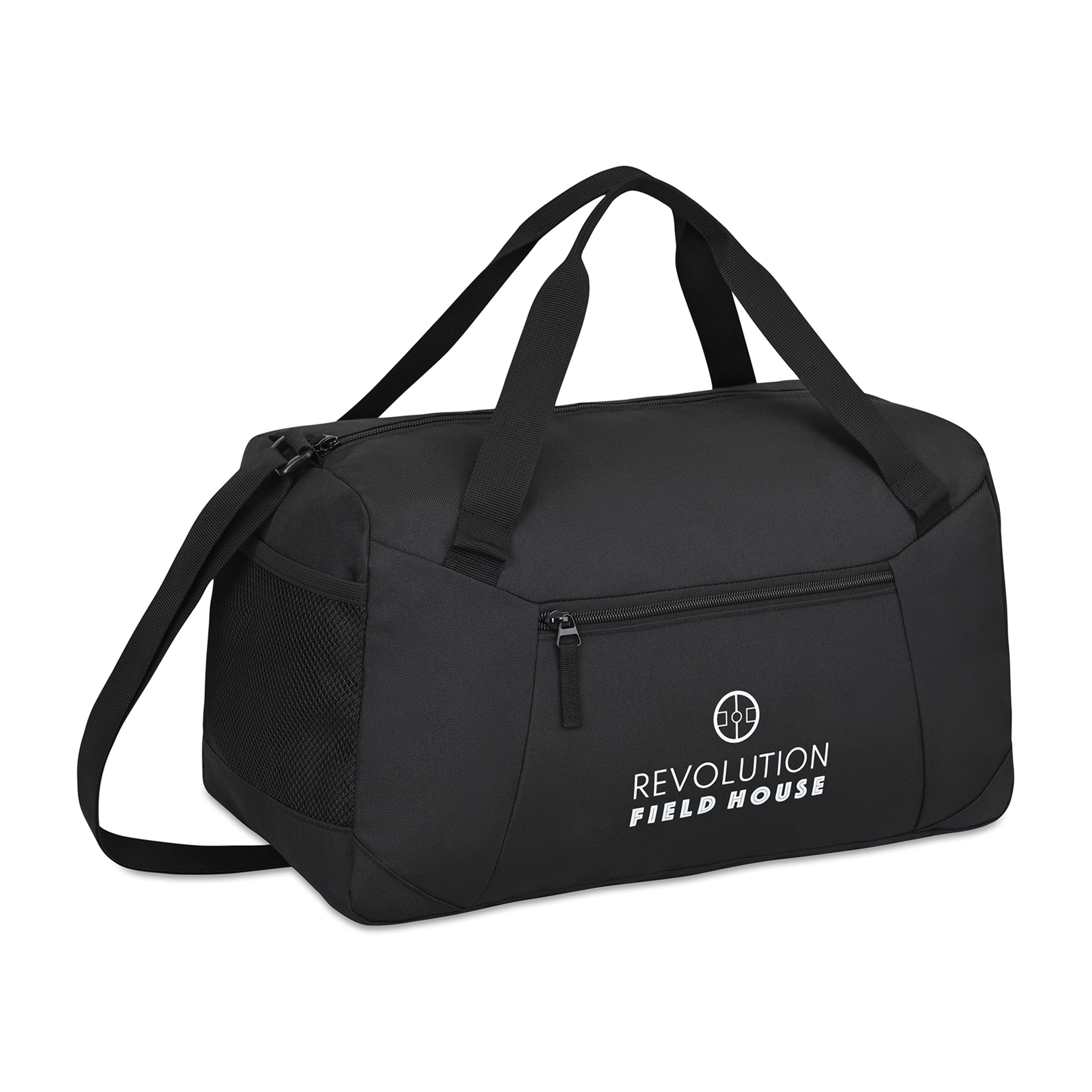 Built for gym, travel, and more. The Rally Recycled Sport Duffel is crafted from 100% recycled materials with a spacious main compartment, front zip pocket, and mesh end panel for quick-access storage. Sturdy grab handles and an adjustable shoulder strap make it easy to carry—your go-to bag for fitness, sports, or everyday use.