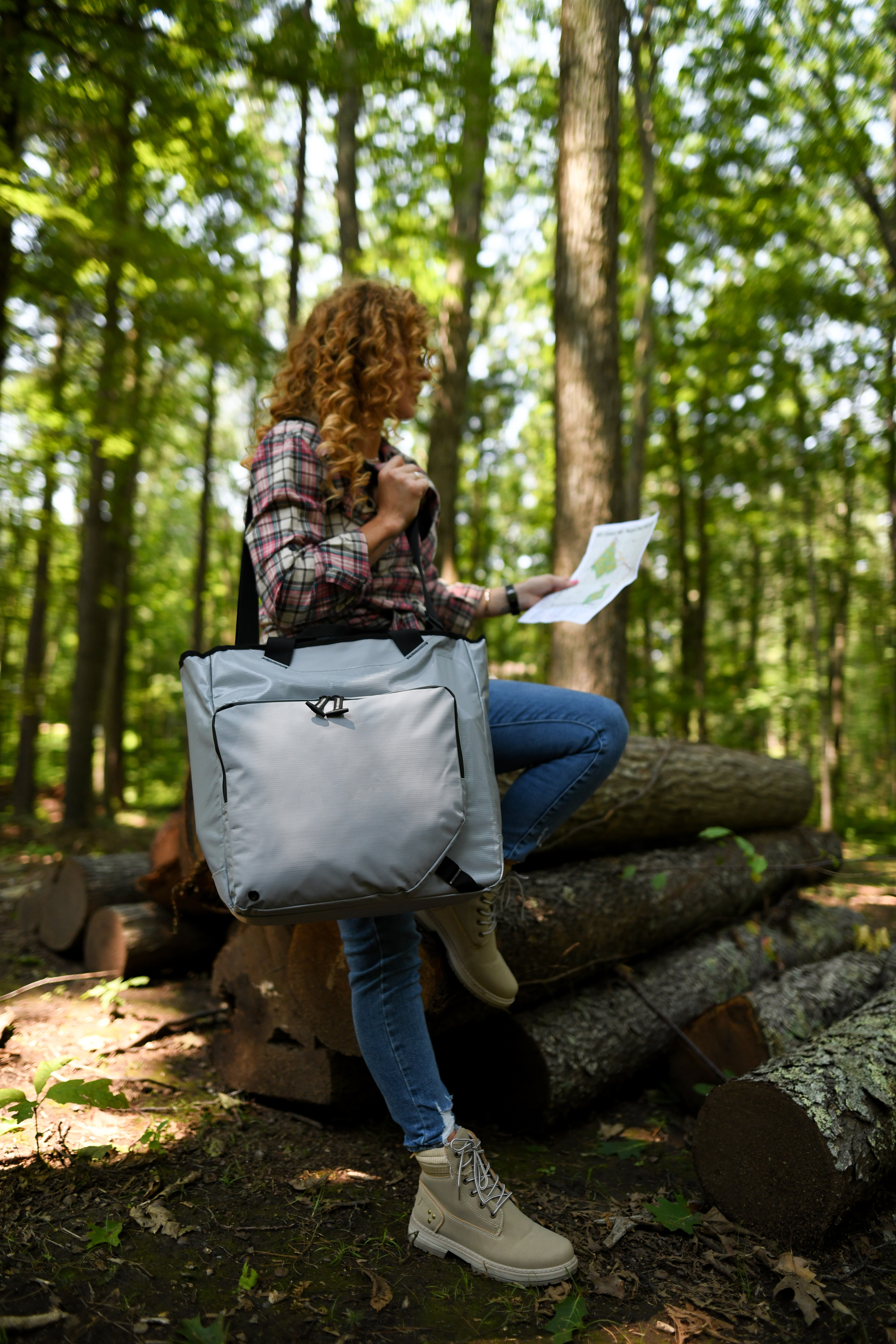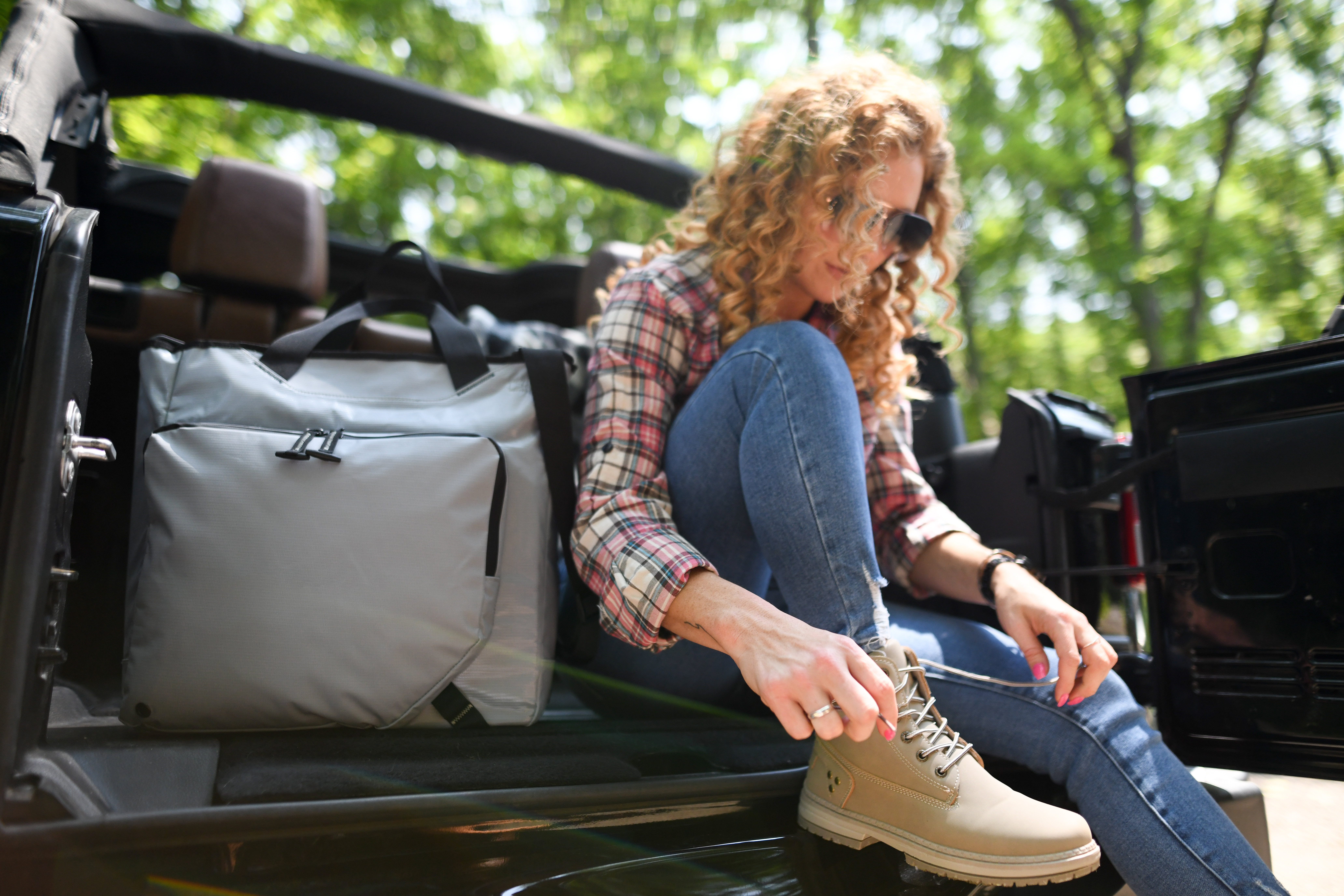 Pack for your next off-road adventure with the Renegade Holdall Tote. Front pocket with coated zipper tape and dual zippered opening. Daisy chain webbing loops to attach your gear for easy access on the go. Grommet detail provides breathability while allowing dirt and debris to fall out when needed. Large main compartment with adjustable buckle closure. Interior zippered pockets for added organization. Interior slash pockets for storing small accessories or a hydration bottle.