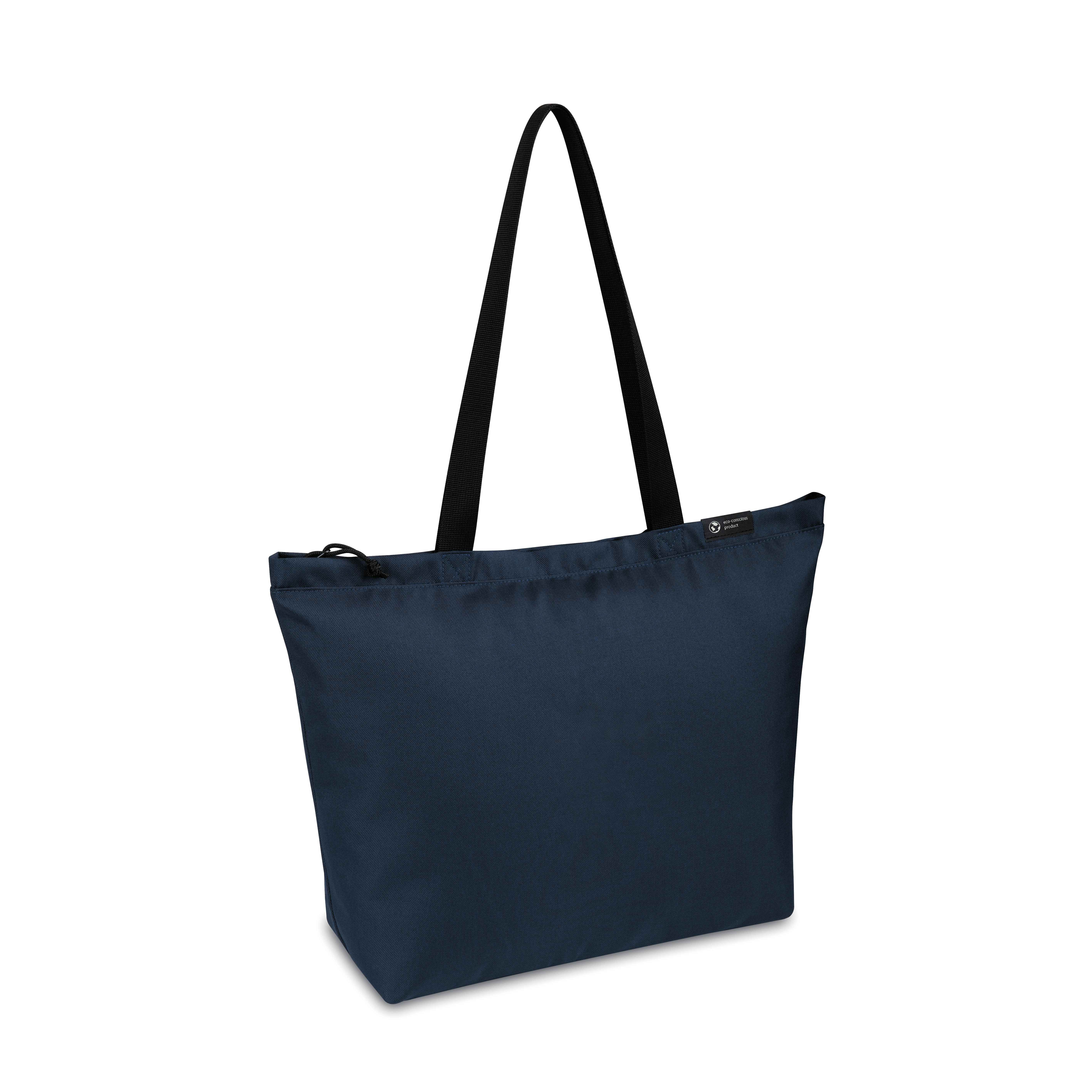 The RENEW AWARE™ RPET Tote redefines the everyday carry with recycled materials made from plastic bottles. Featuring a spacious zippered main compartment, an interior sleeve for a water bottle, and 25.75" shoulder straps, it’s both practical and planet-conscious. Includes an AWARE™ Virtual ID for verified material traceability. CPSIA compliant and PVC free, this tote is perfect for daily use or travel across the US, Canada, UK, and Europe.