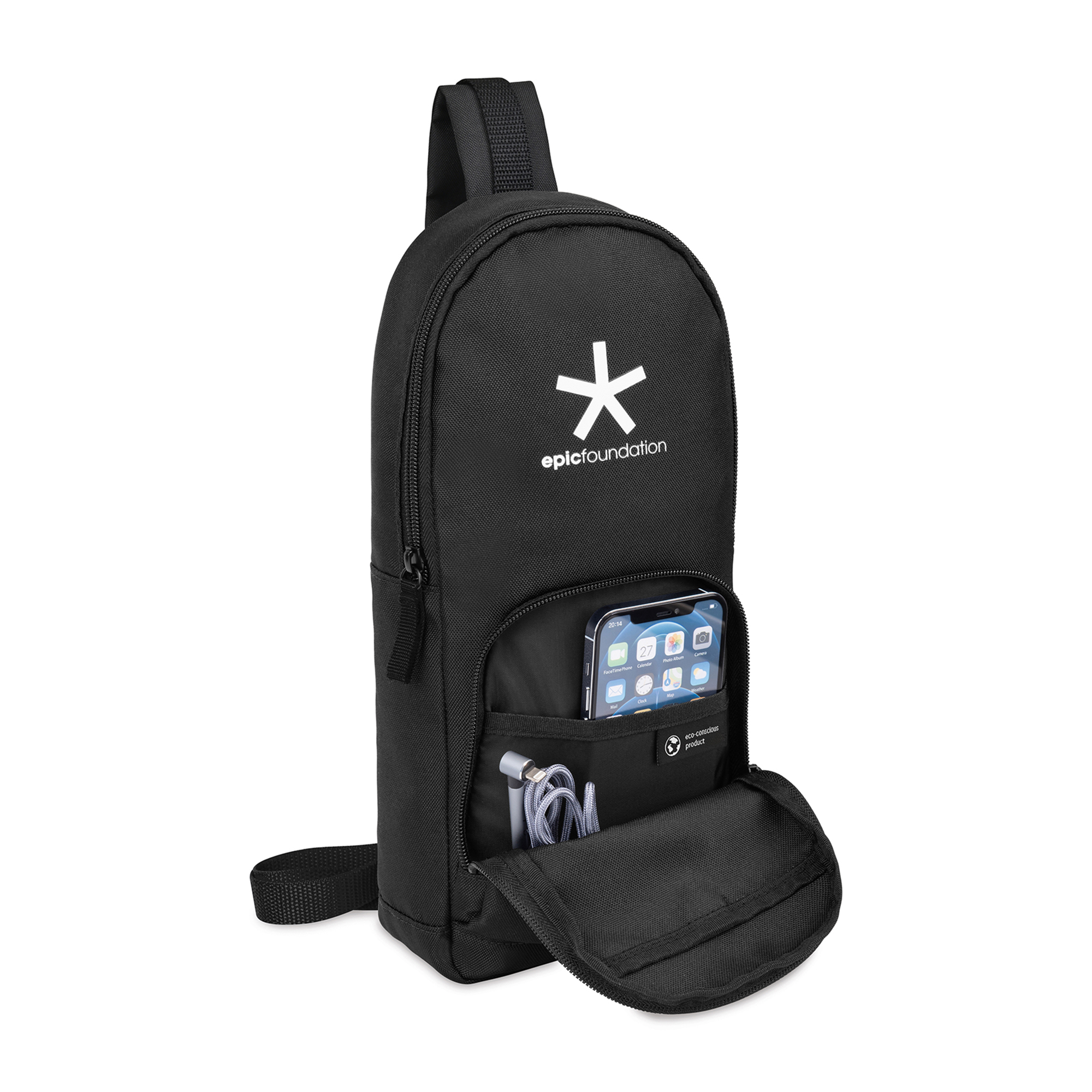 The Repeat Recycled Poly Sling is a modern take on a classic, made with fabric and webbing from recycled plastic bottles. Featuring a roomy dual-zip main compartment, front zip pocket, and top grab handle, it’s lightweight, versatile, and kid-friendly. CPSIA compliant and PVC-free.