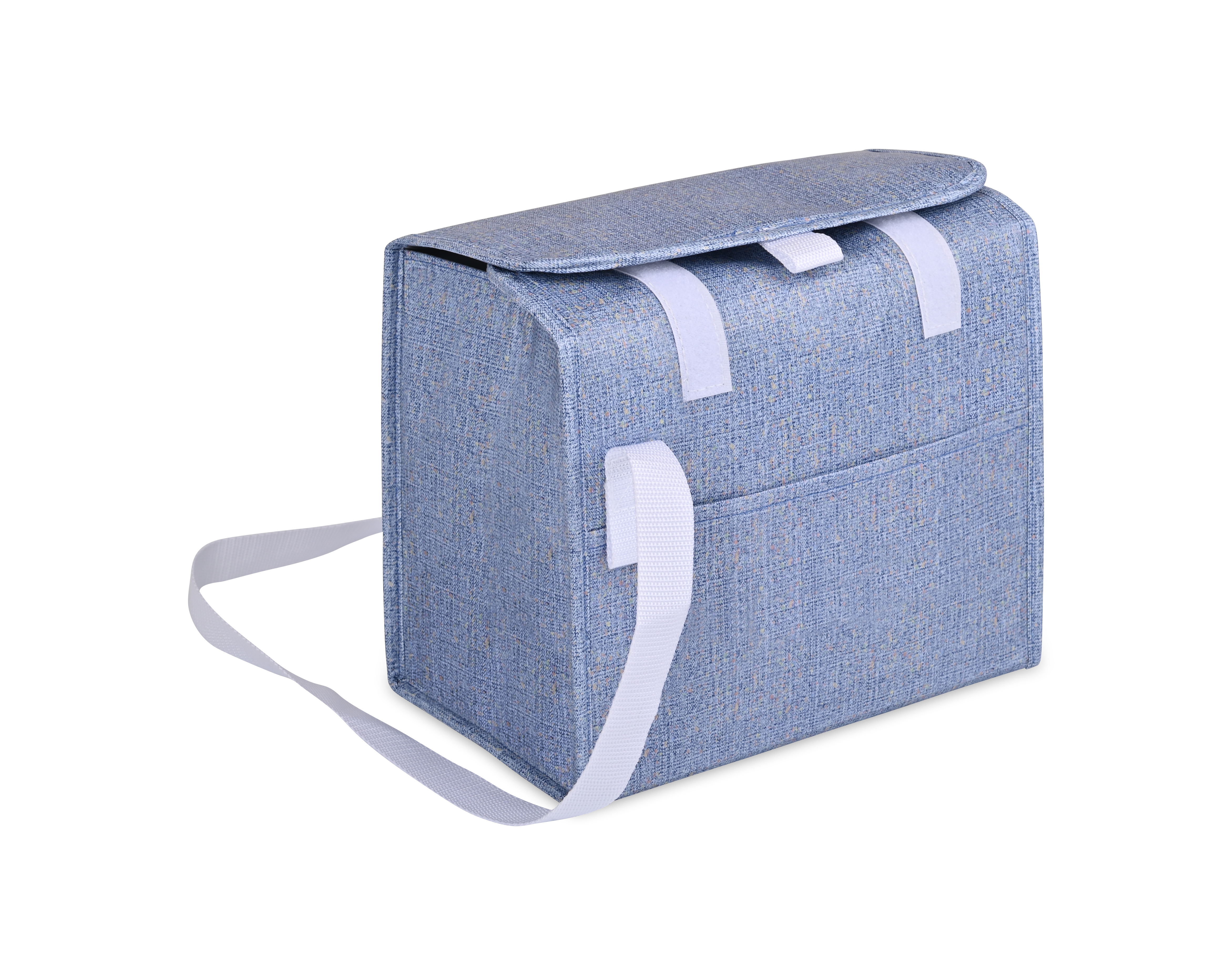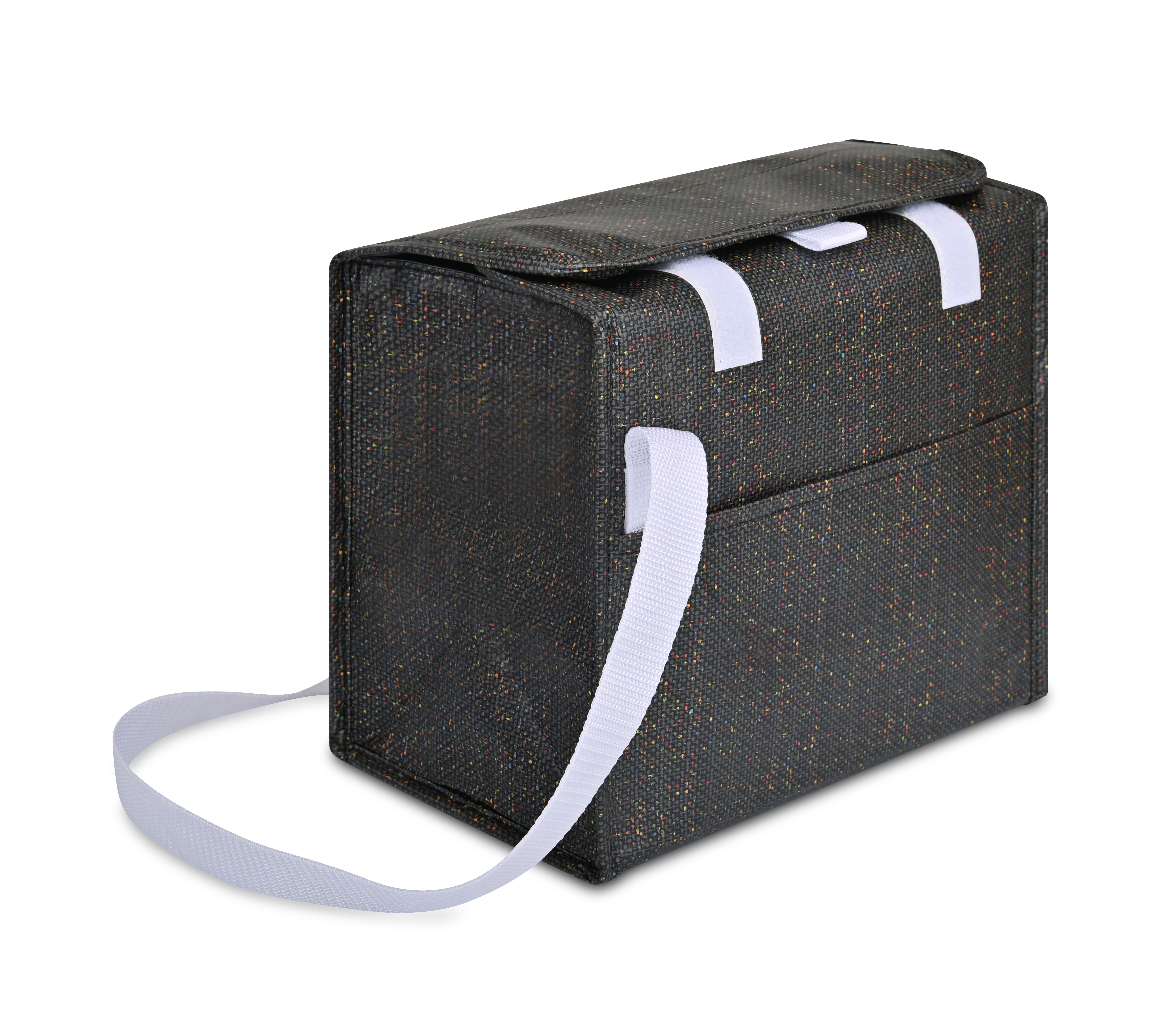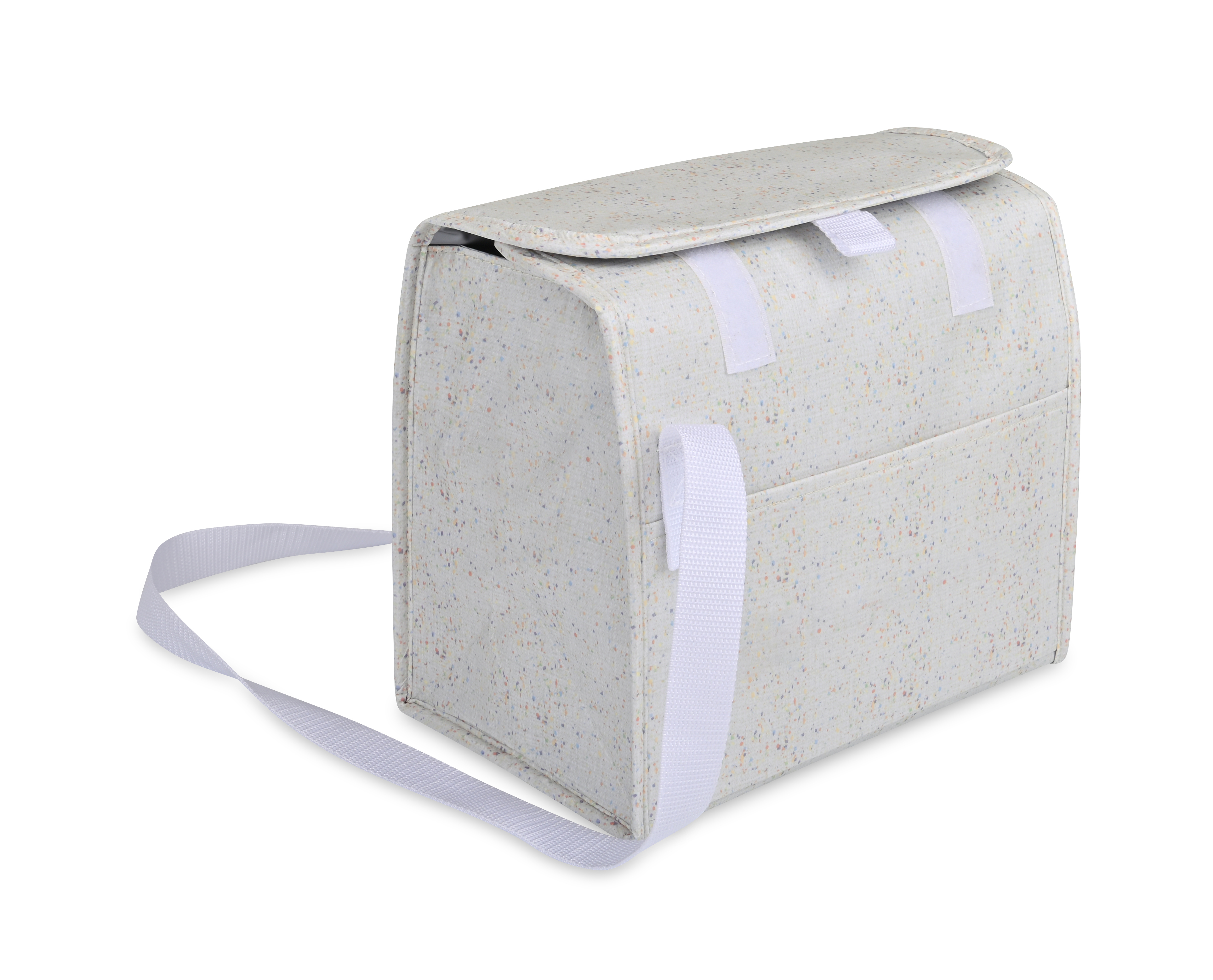 The Sami Box Cooler combines everyday function with a subtle flecked design made from recycled laminated nonwoven material. With a wipeable PEVA lining, adjustable shoulder strap, and front slash pocket, it’s perfect for carrying up to 10 cans. A flap closure with hook-and-loop fastening lets you adjust the height to fit your load, making it a versatile cooler for daily outings.