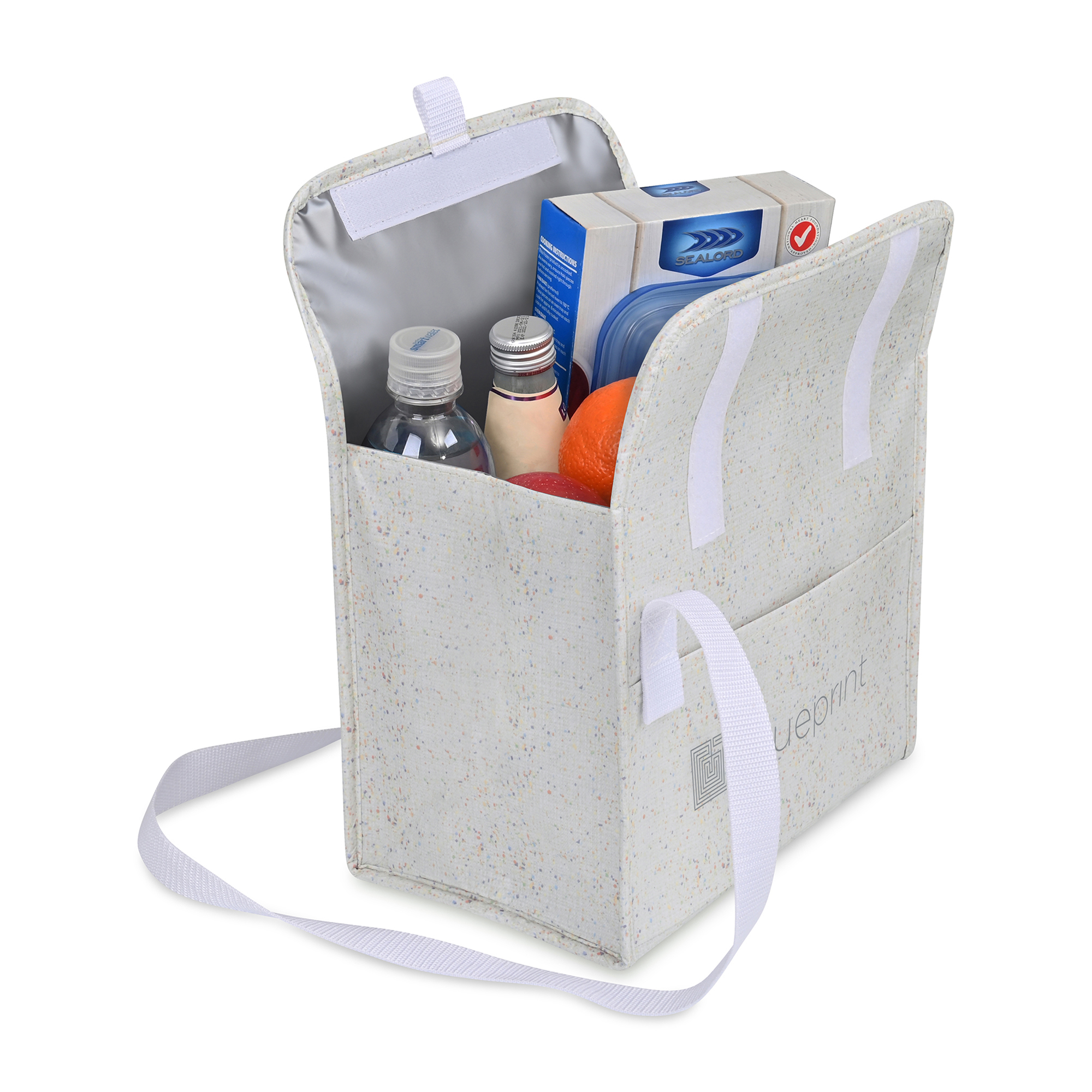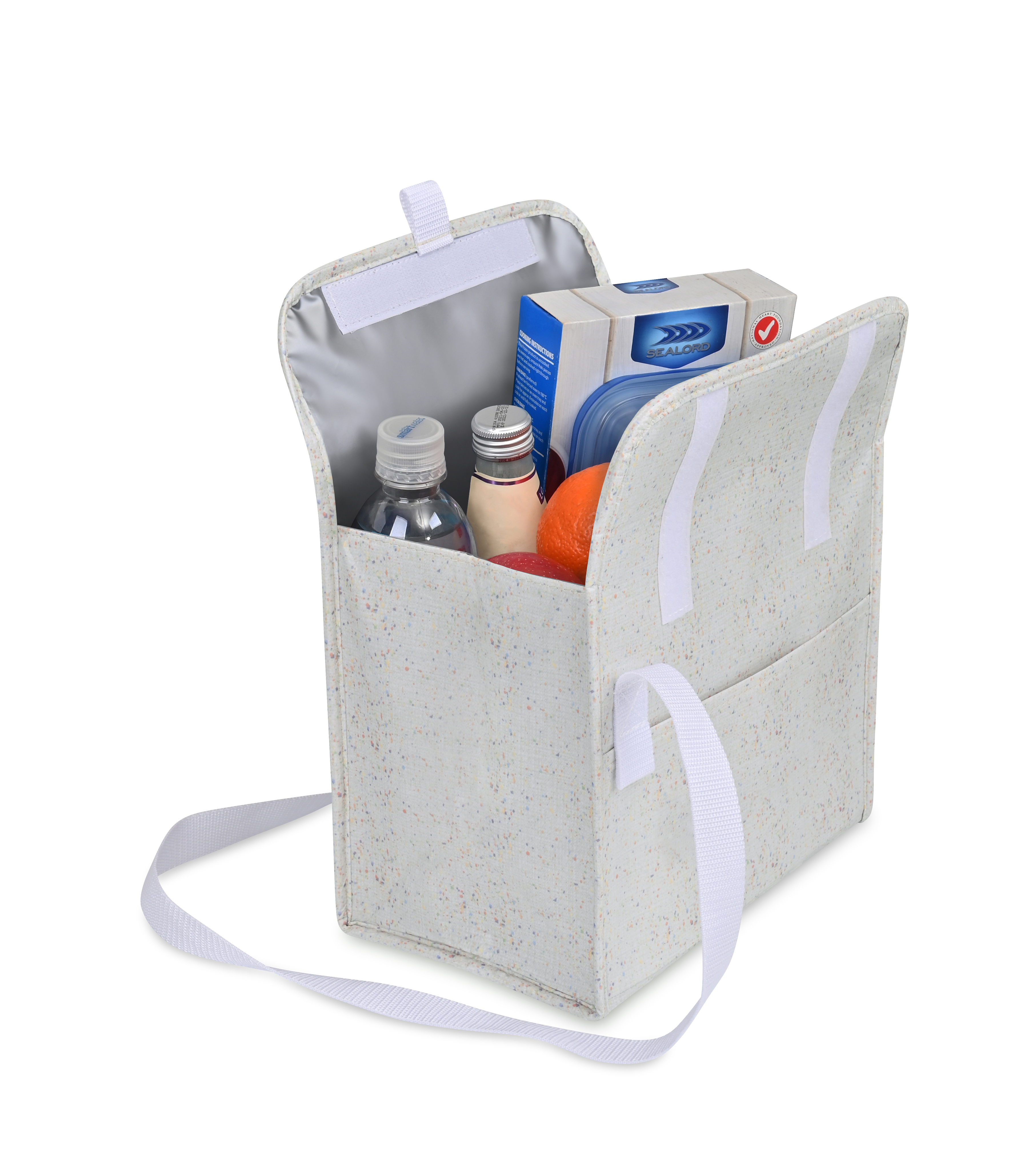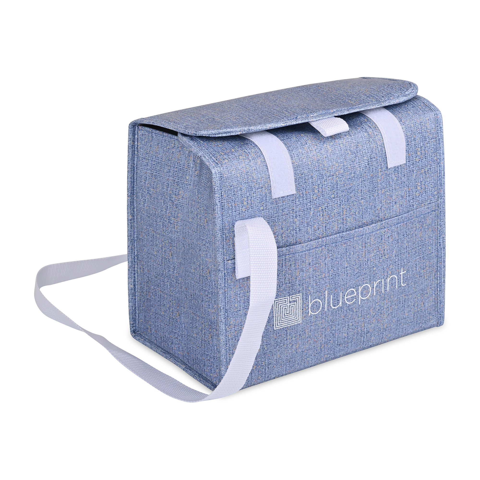The Sami Box Cooler combines everyday function with a subtle flecked design made from recycled laminated nonwoven material. With a wipeable PEVA lining, adjustable shoulder strap, and front slash pocket, it’s perfect for carrying up to 10 cans. A flap closure with hook-and-loop fastening lets you adjust the height to fit your load, making it a versatile cooler for daily outings.