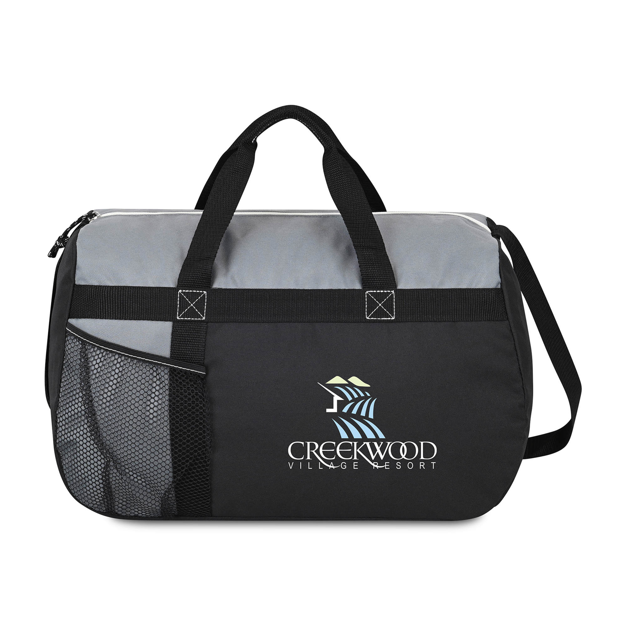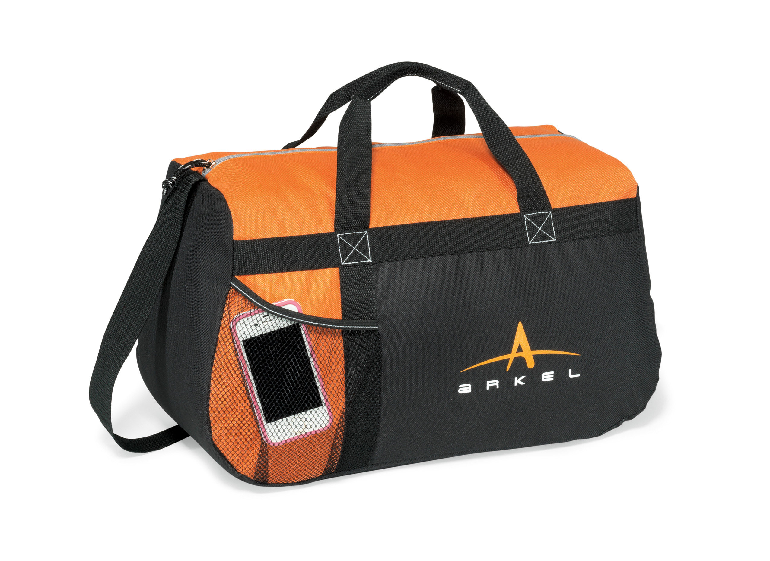 Travel in style with this all-purpose duffel! Made of 600 denier polyester, features include a front mesh water bottle pocket, large zippered main compartment with cord pull, shoulder strap and top grab handles. This bag is available in an array of colors, acting as a backdrop for your custom imprinted logo. This Kid Friendly(R) product meets CPSIA guidelines for use by children 12 years and younger. This product is tested for lead levels only.